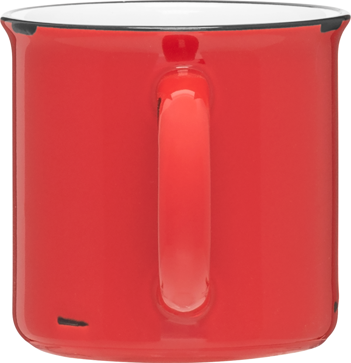The Ventura 15 oz ceramic mug brings rustic style with a modern twist. It features a glossy colored exterior with a matte black distressed finish, a glossy white interior, and a black rim for added contrast. Perfect for coffee, tea, or cocoa, this mug is ideal for cozy mornings, office settings, or custom branding.