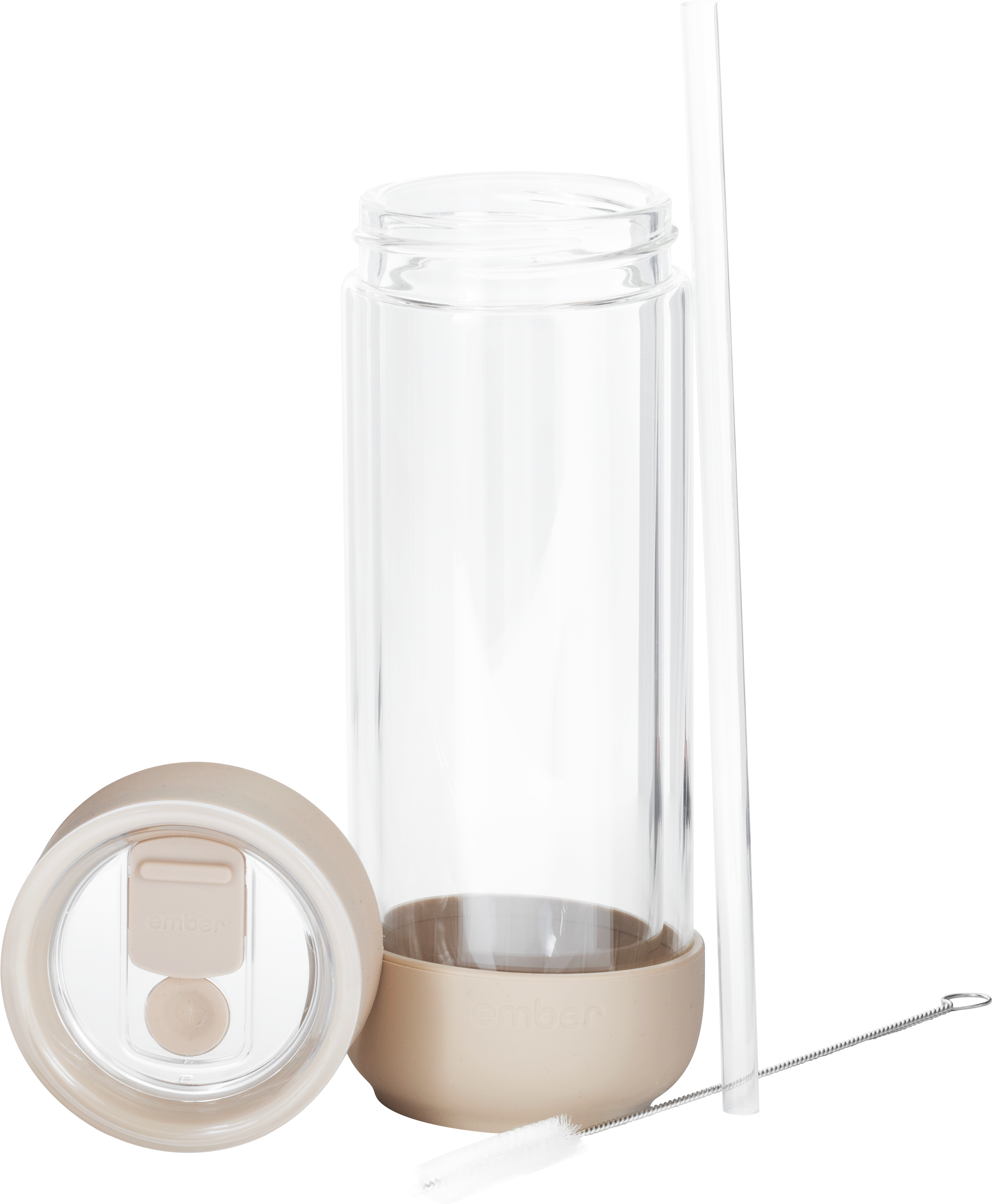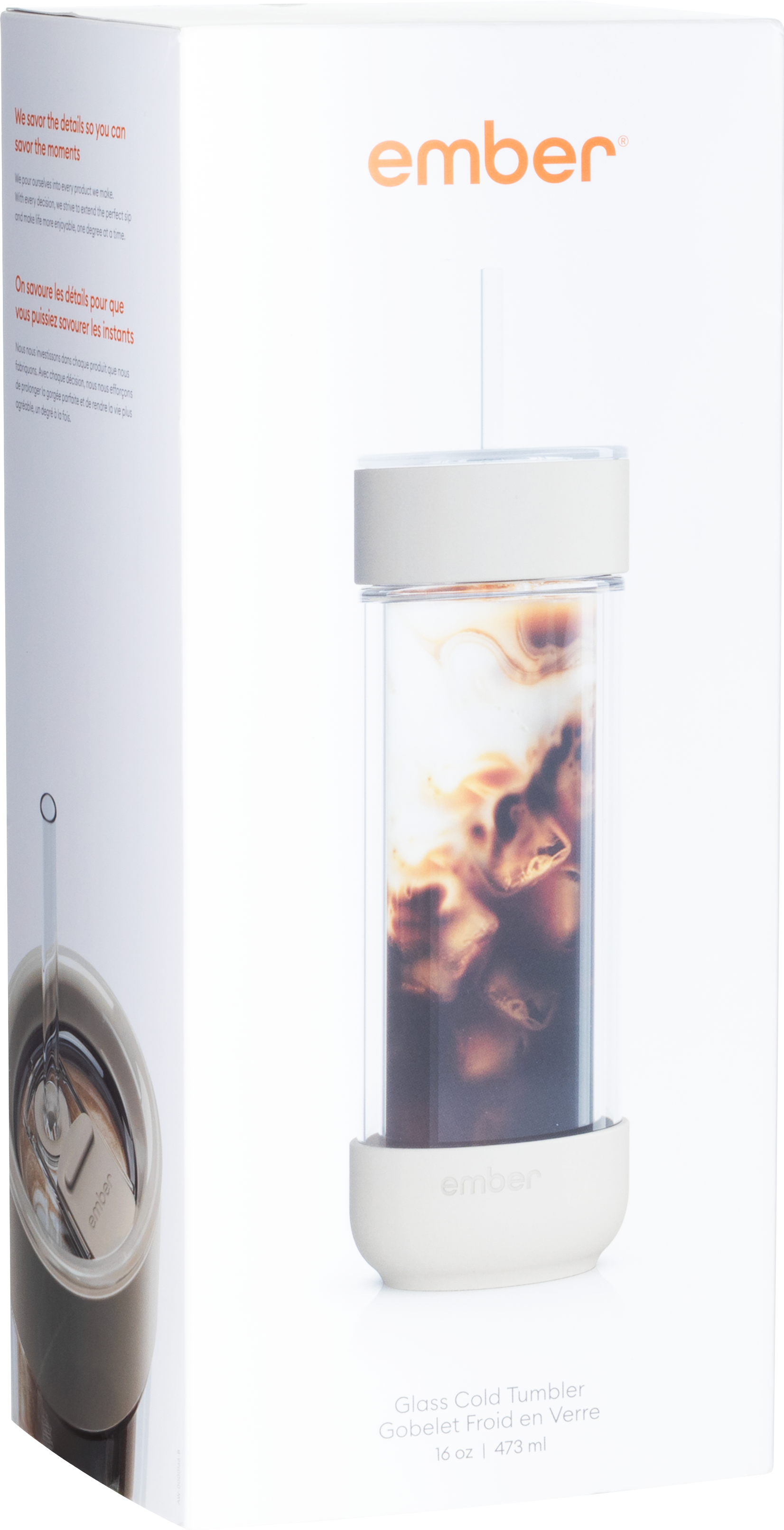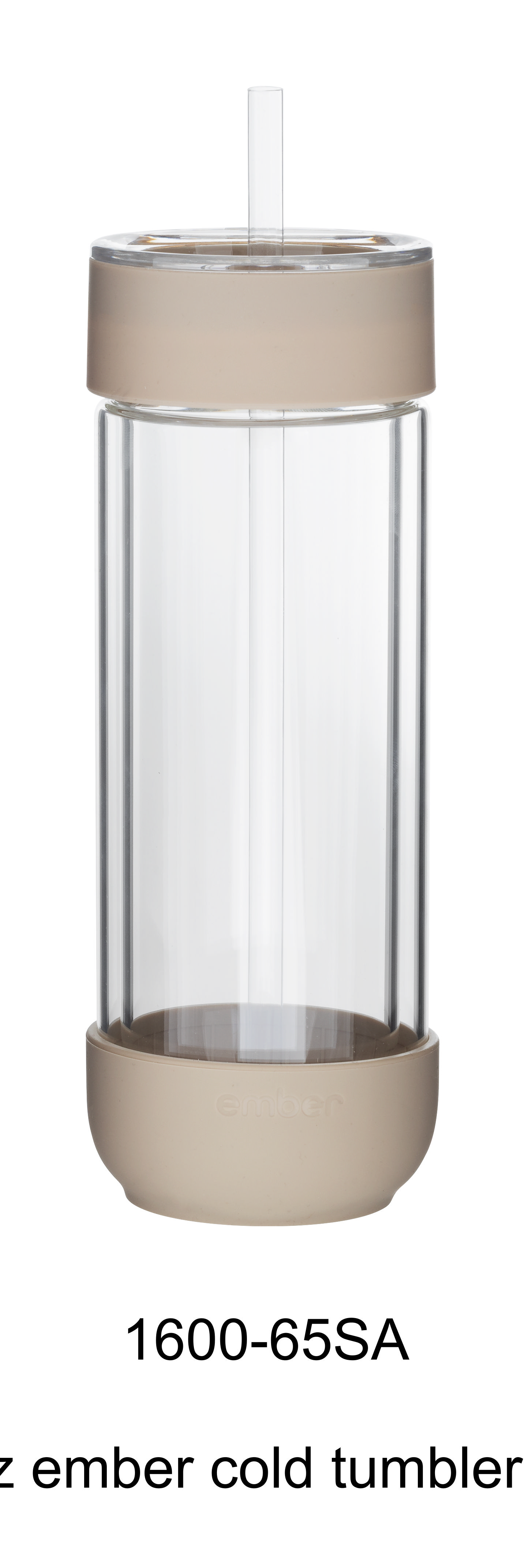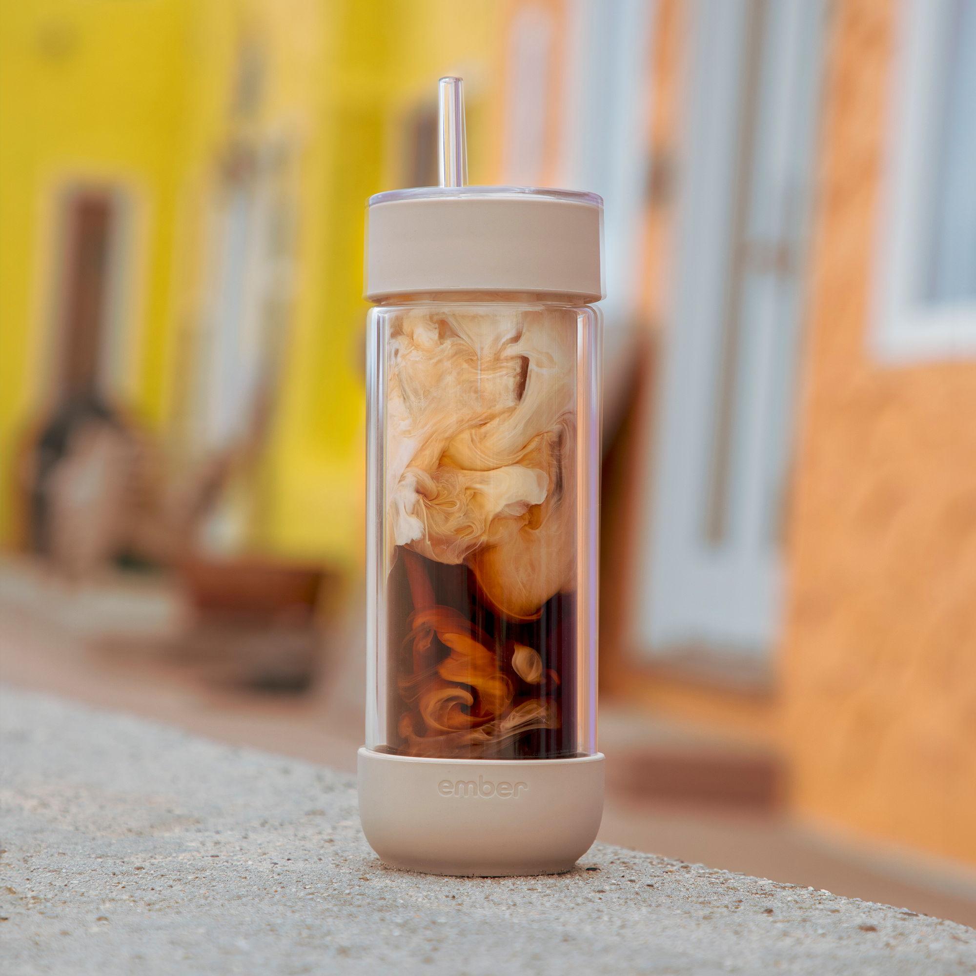 The Ember Cold Tumbler 16 oz is a sleek, double-wall insulated borosilicate glass tumbler designed to keep cold drinks chilled for over 6 hours without condensation. Its temperature-resistant, laboratory-grade glass preserves beverage taste, while the 2-way sliding lid allows for sipping or straw use with the included Tritan™ straw. A soft-touch silicone boot offers grip and cushioning, and the compact profile fits most cup holders. Made from BPA-free materials.