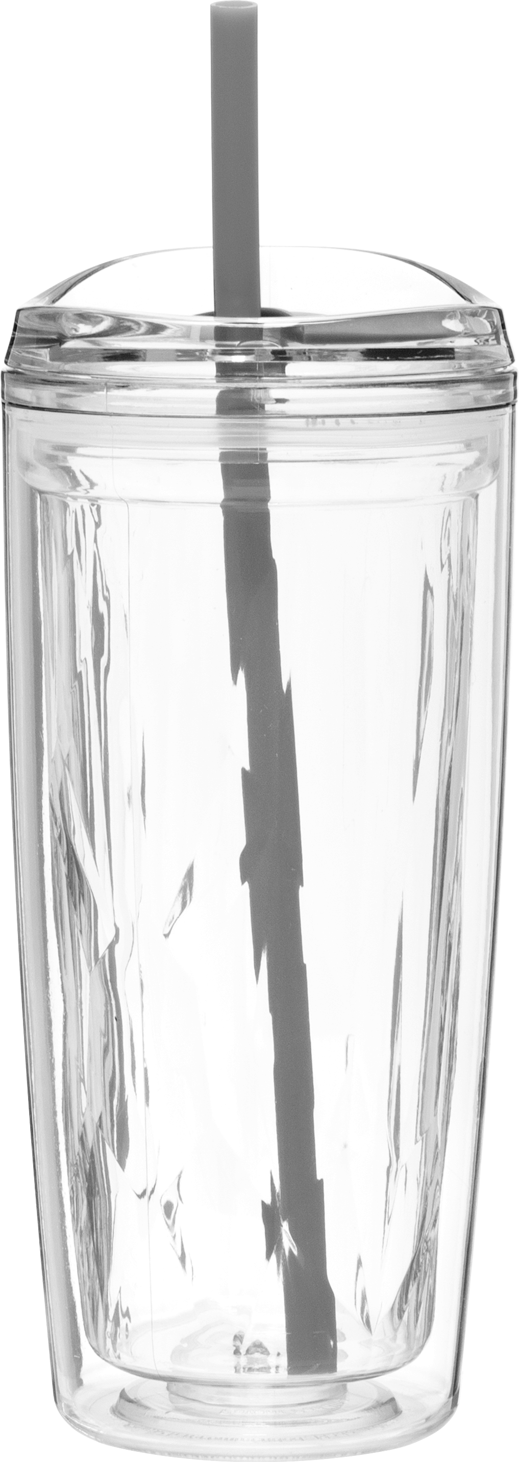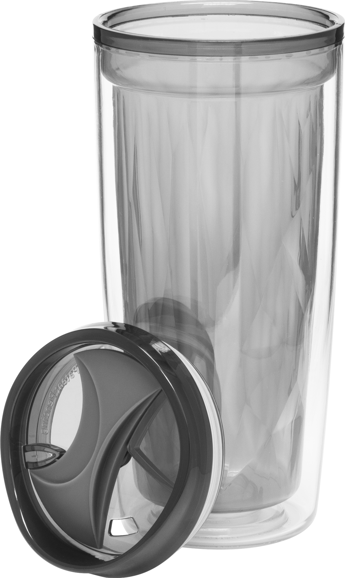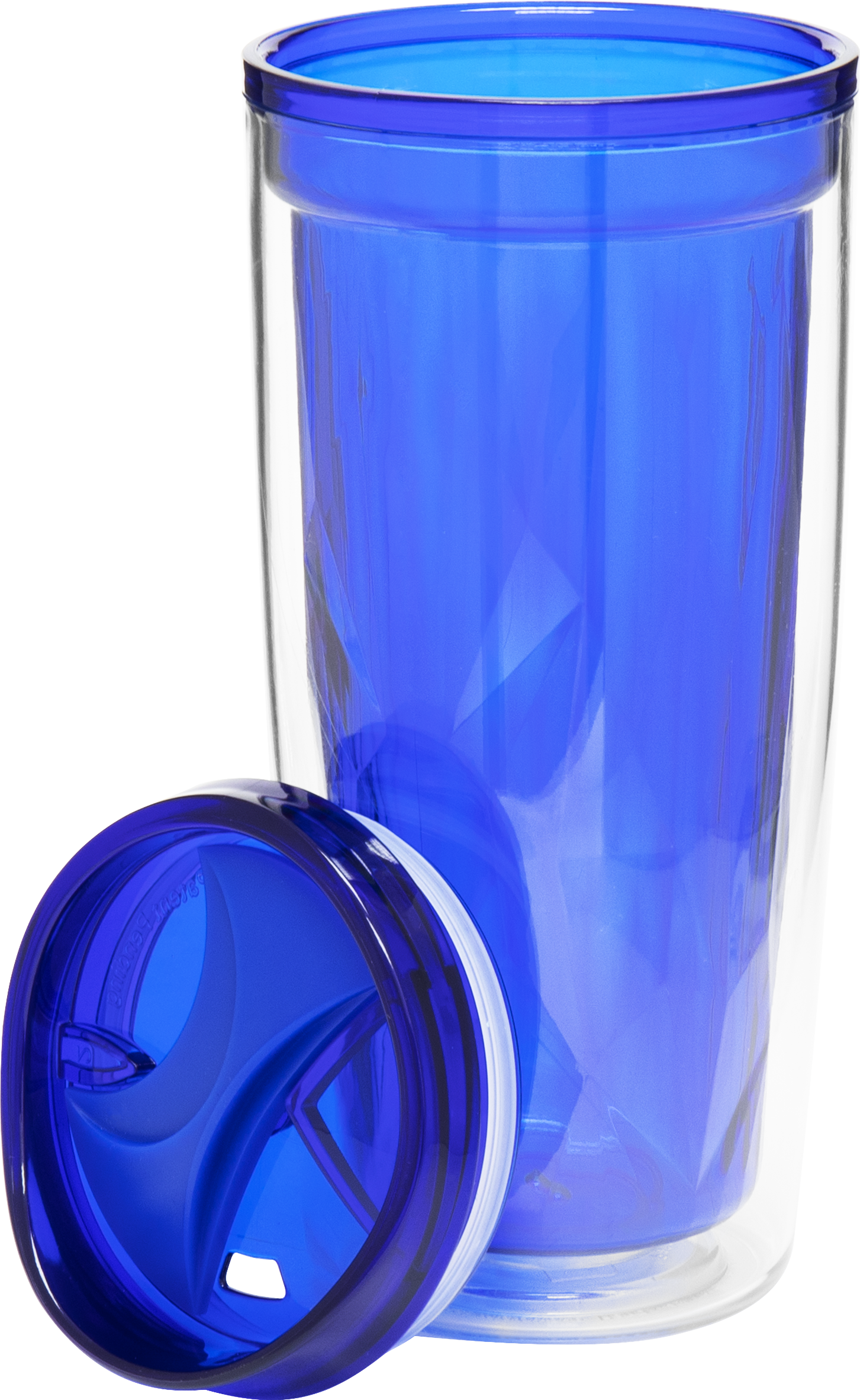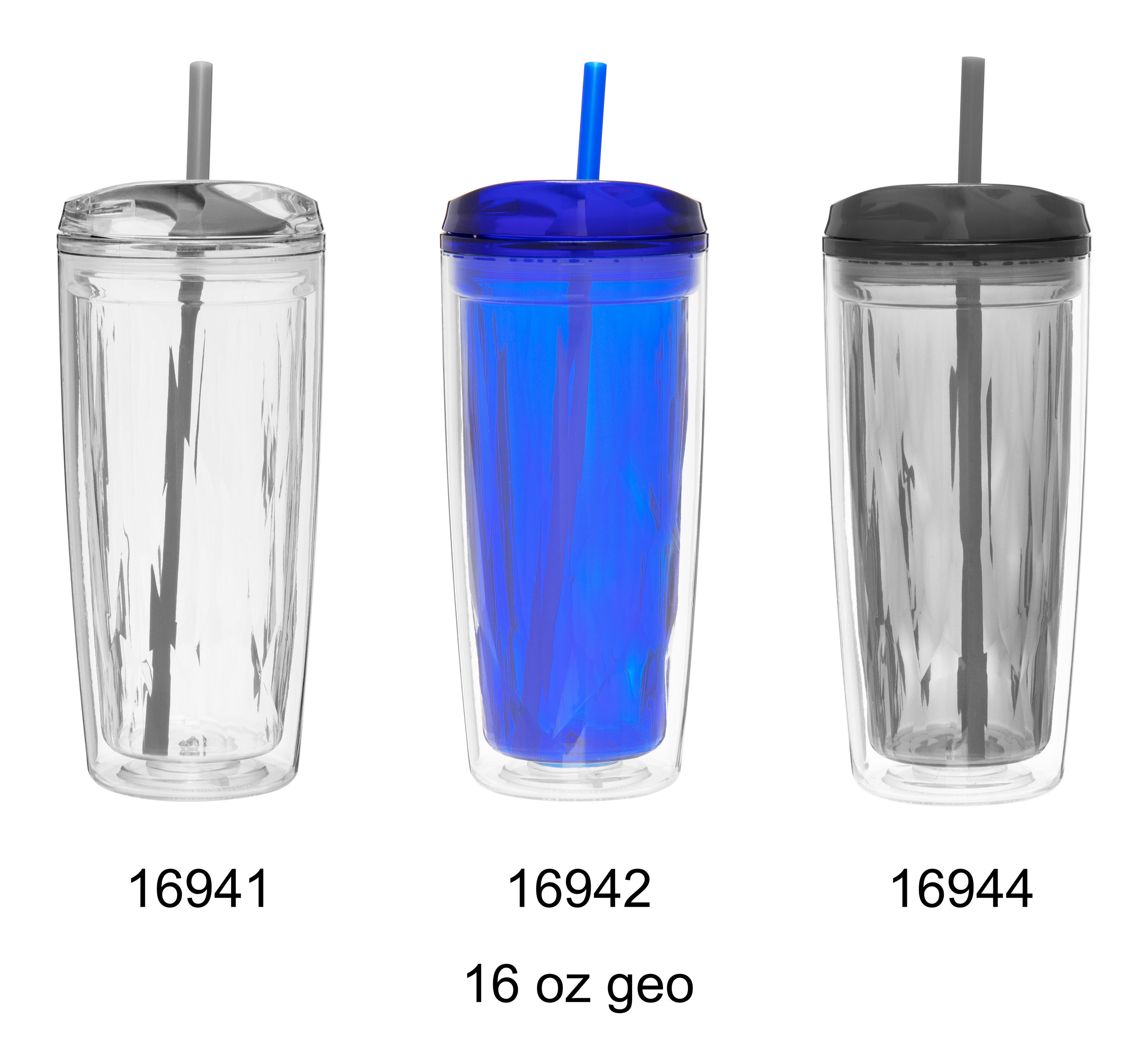 The Geo 16 oz acrylic tumbler stands out with bold geometric style and functional design. It features a clear outer wall paired with a colored geometric inner wall for a layered visual effect. The dual-purpose push-on lid includes a swivel closure and a matching straw for versatile sipping. Packaged in a gift box, Geo is a great choice for events, giveaways, or everyday use.