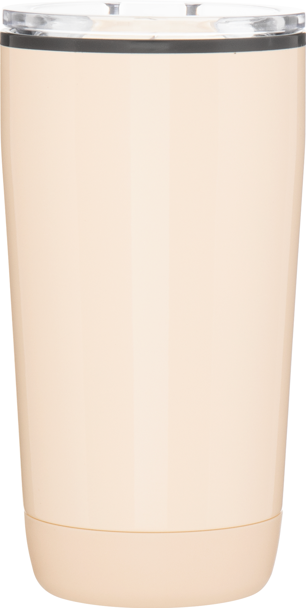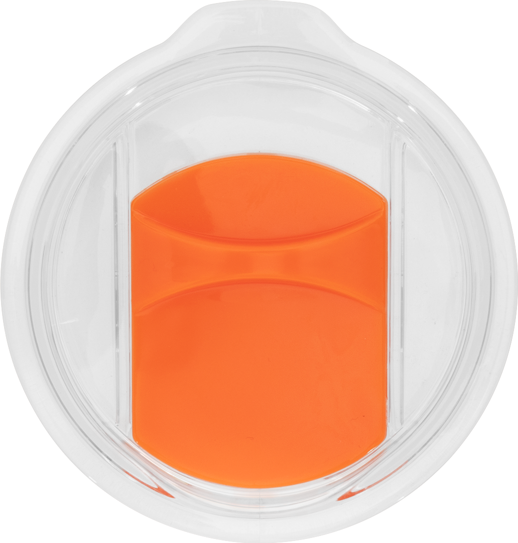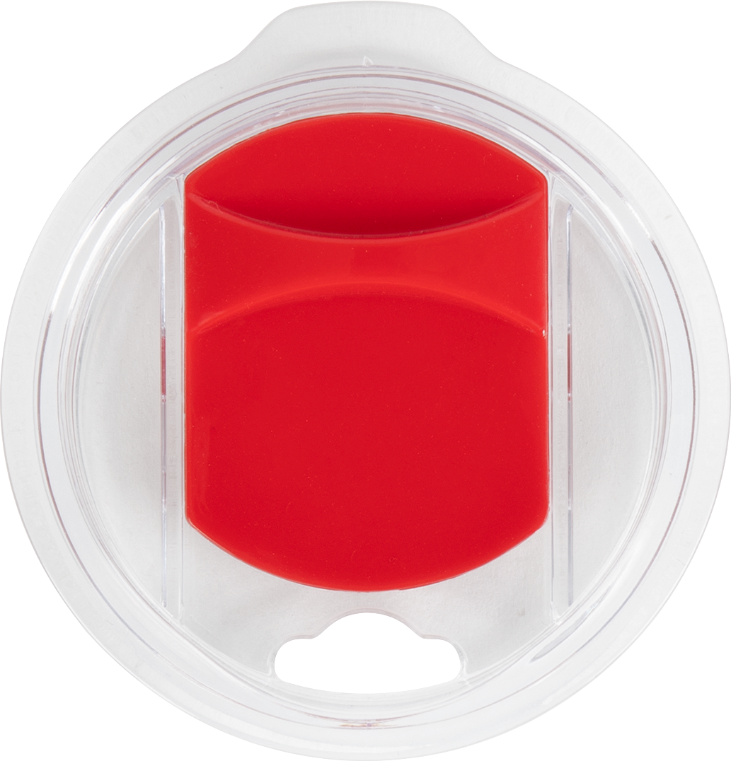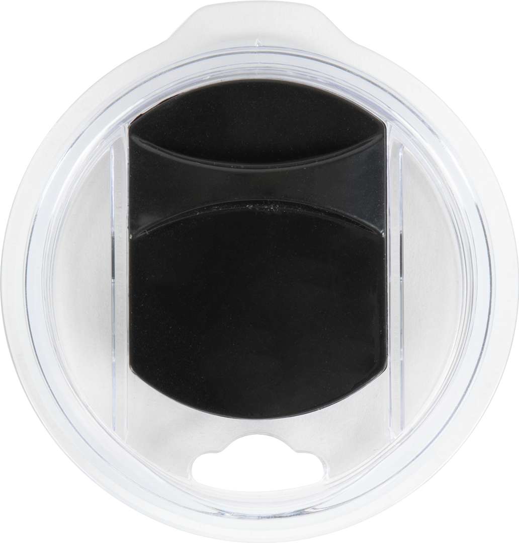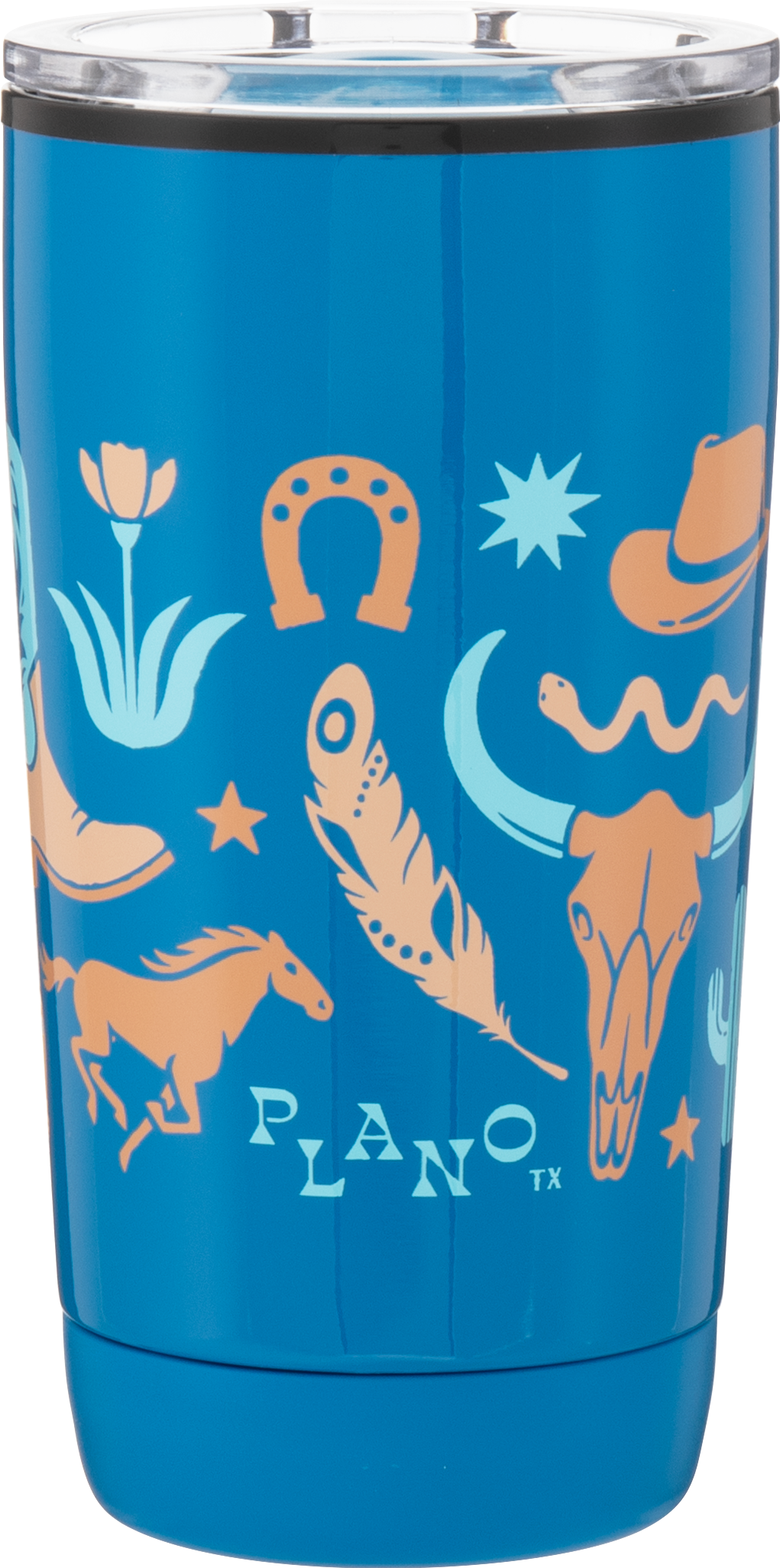 The Plano 16 oz tumbler offers a polished look with practical performance. It features a double wall design with a stainless steel outer wall and a plastic inner wall to help maintain temperature. The clear push-on lid includes a matching sliding closure for easy, splash-resistant sipping. Finished with a glossy exterior and a matte base for added grip and contrast, it's great for coffee, tea, or cold drinks on the go.