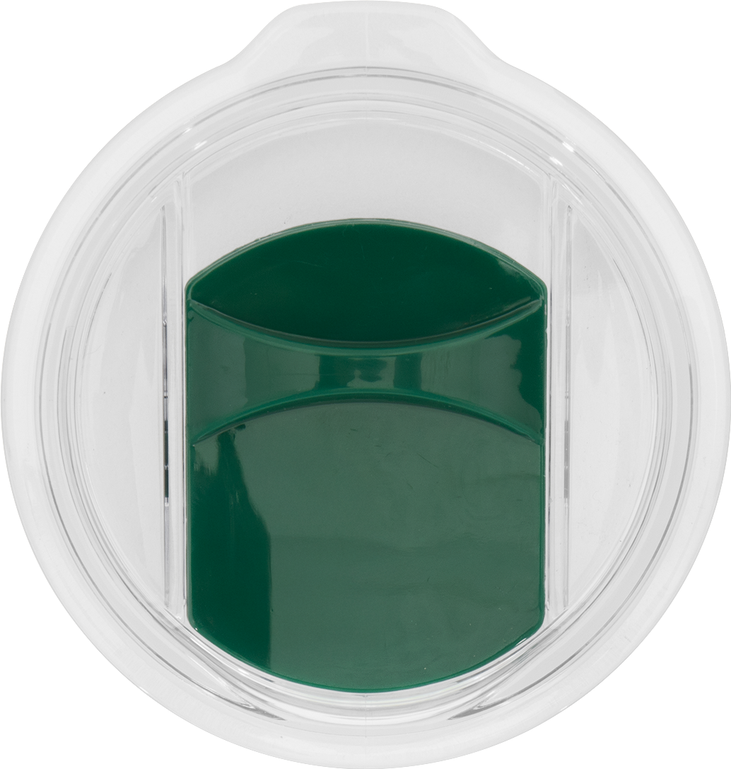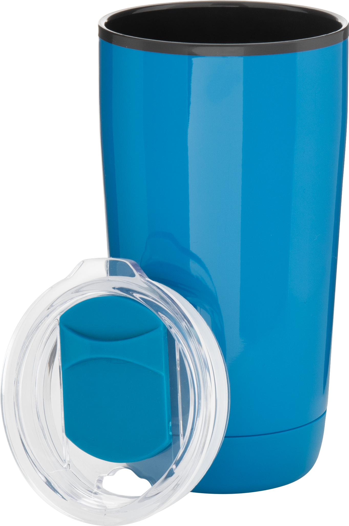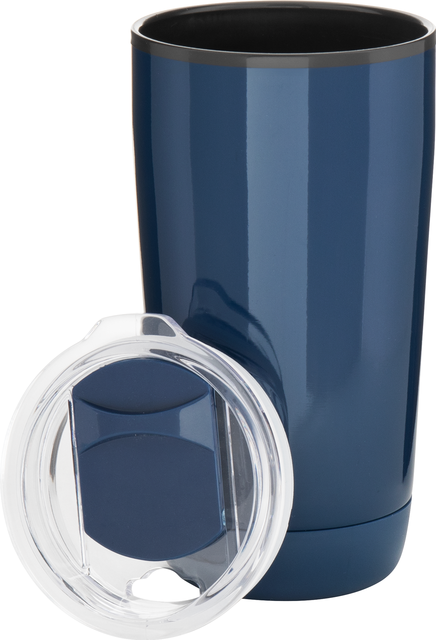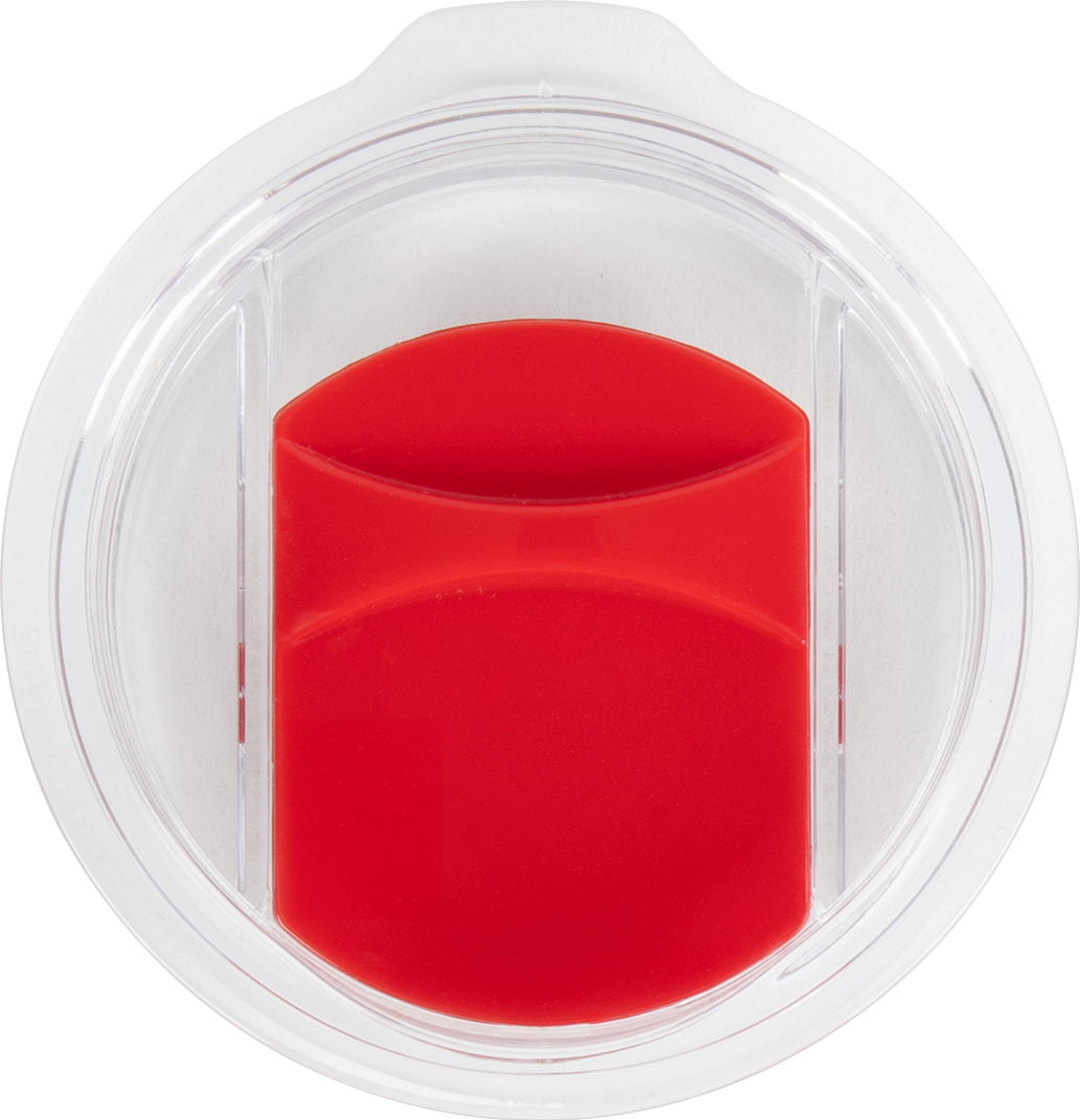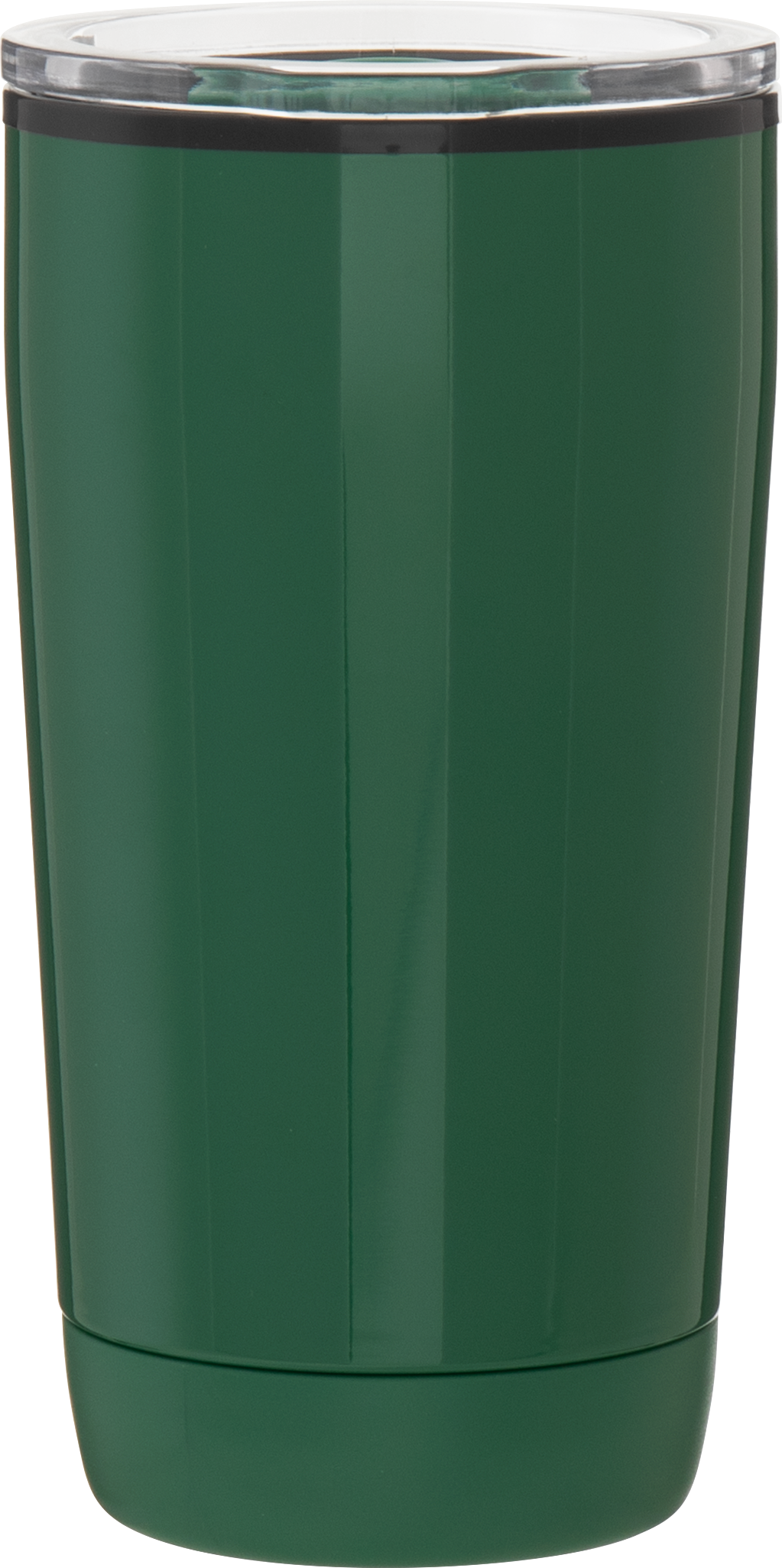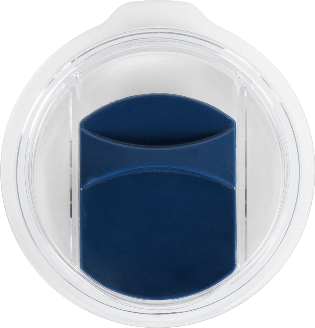 The Plano 16 oz tumbler offers a polished look with practical performance. It features a double wall design with a stainless steel outer wall and a plastic inner wall to help maintain temperature. The clear push-on lid includes a matching sliding closure for easy, splash-resistant sipping. Finished with a glossy exterior and a matte base for added grip and contrast, it's great for coffee, tea, or cold drinks on the go.