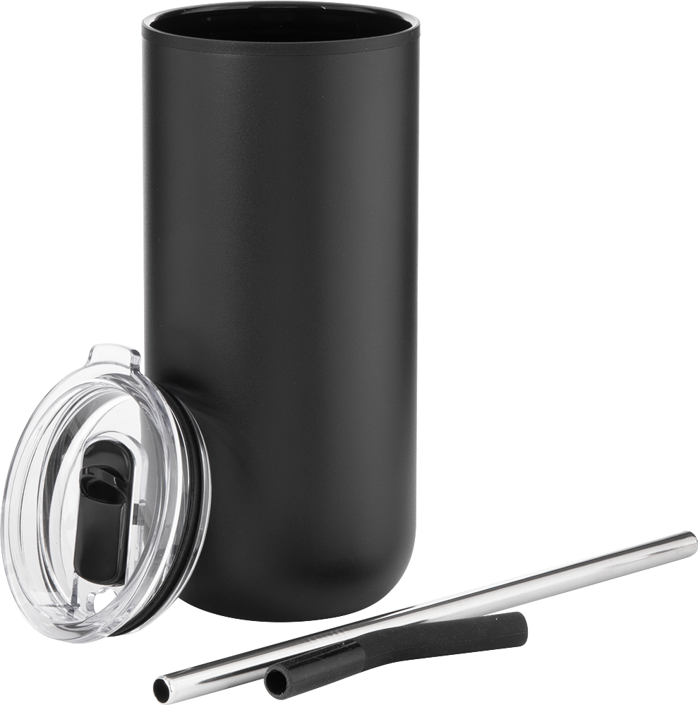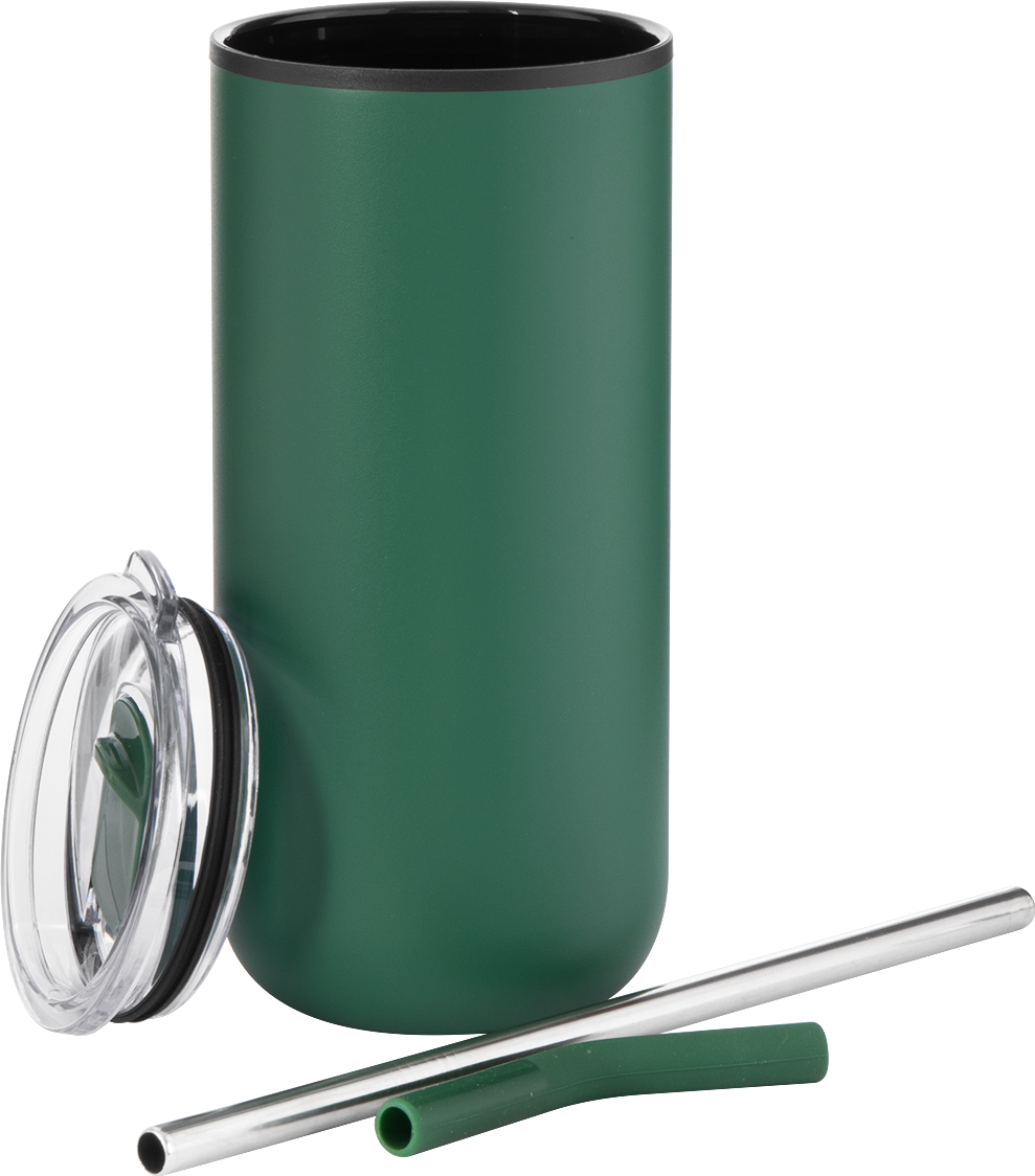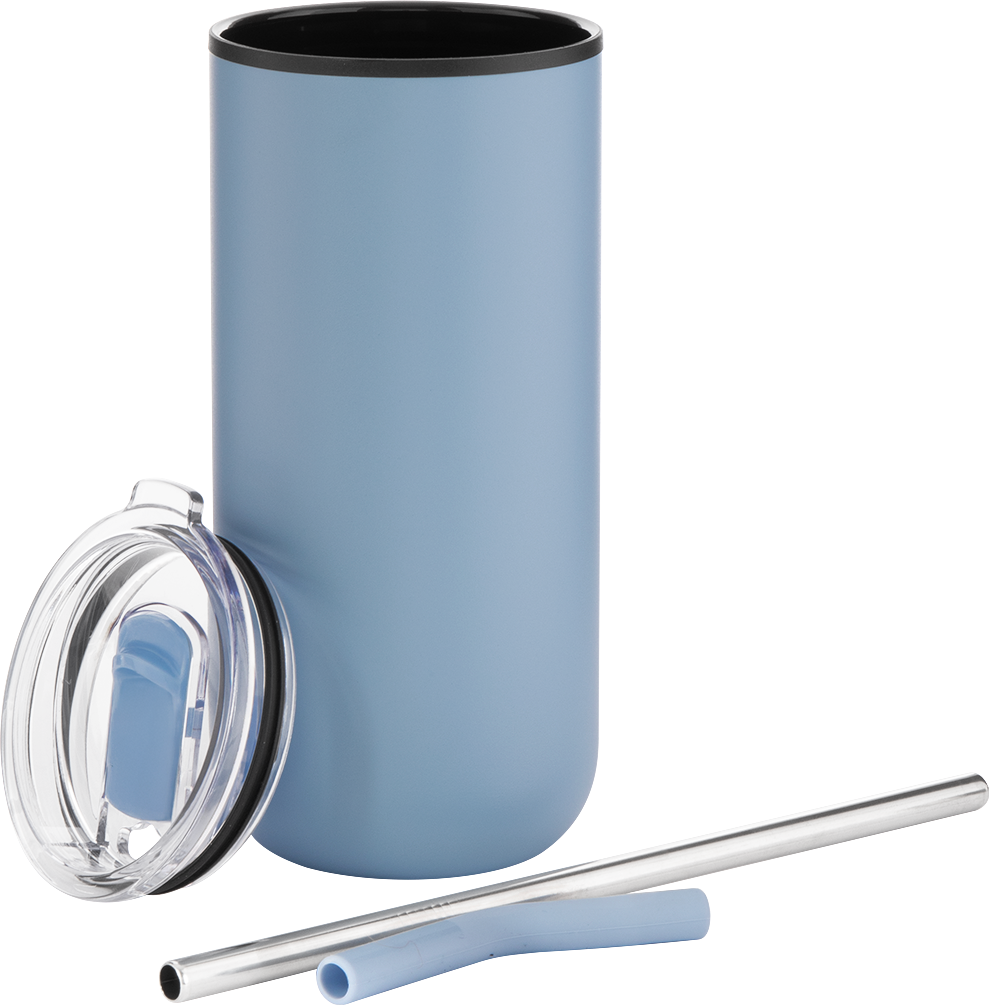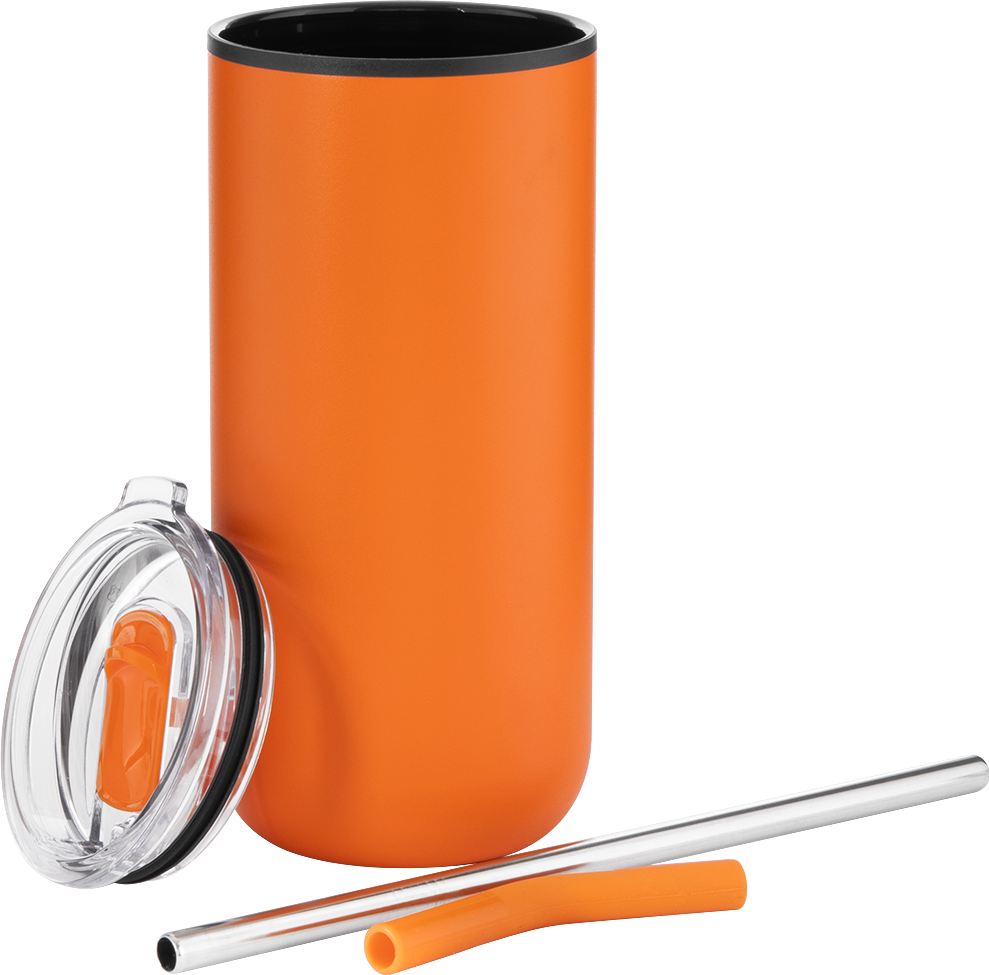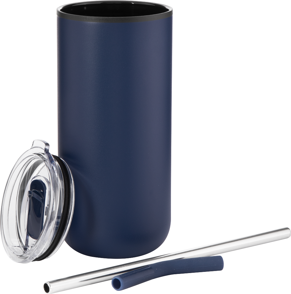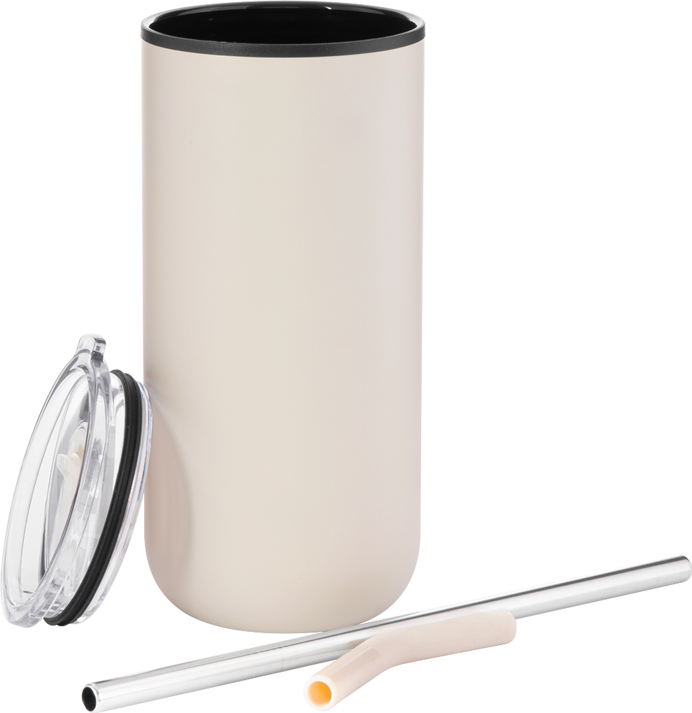 The Ryder 16 oz tumbler is designed for all-day versatility. It features a durable stainless steel outer wall and a plastic inner wall, with a dual-purpose push-on lid for both hot and cold drinks. Use the sliding closure for sipping coffee or the stainless steel straw with silicone guard for cold beverages. Its slim shape fits most cup holders, making it a go-to for commuting or relaxing.