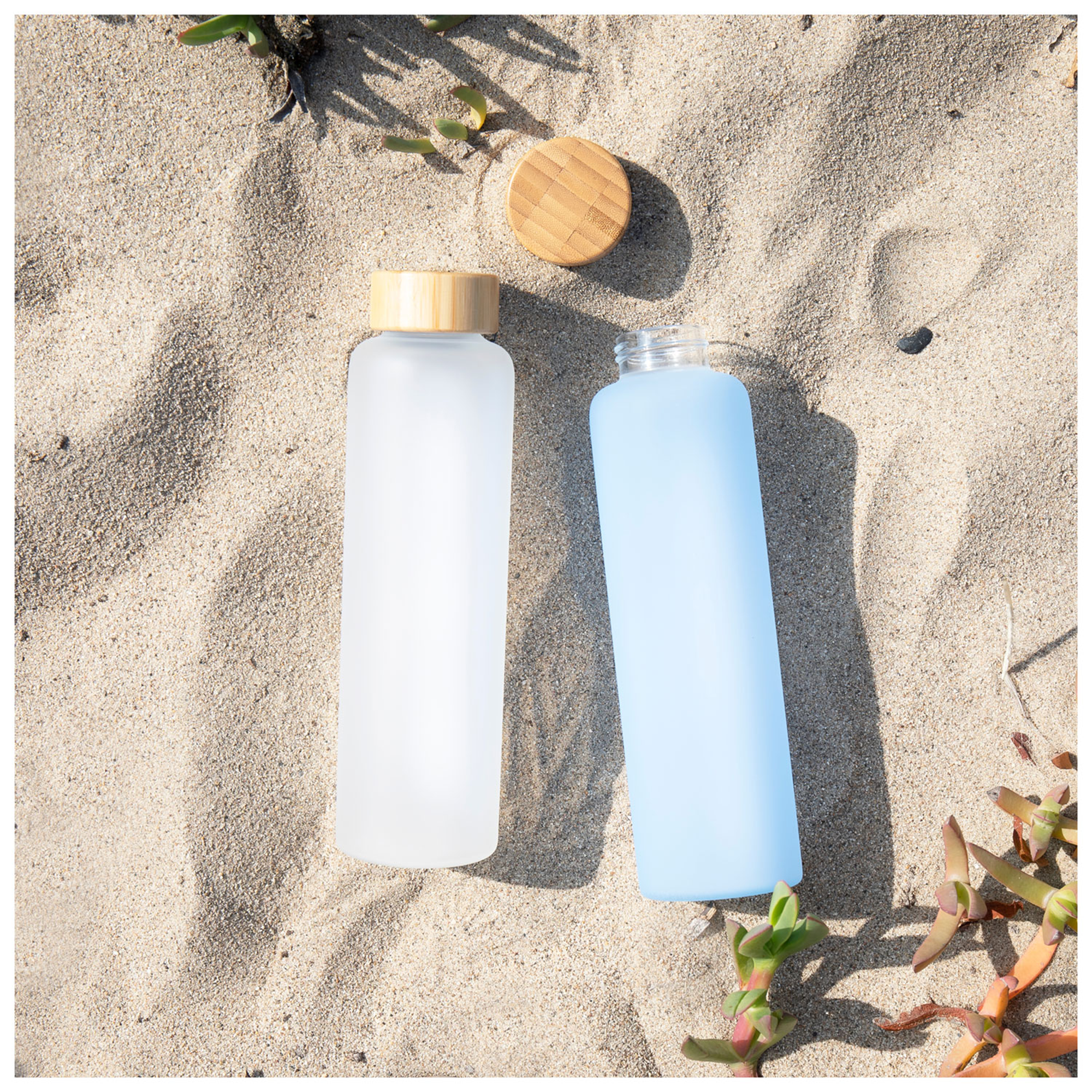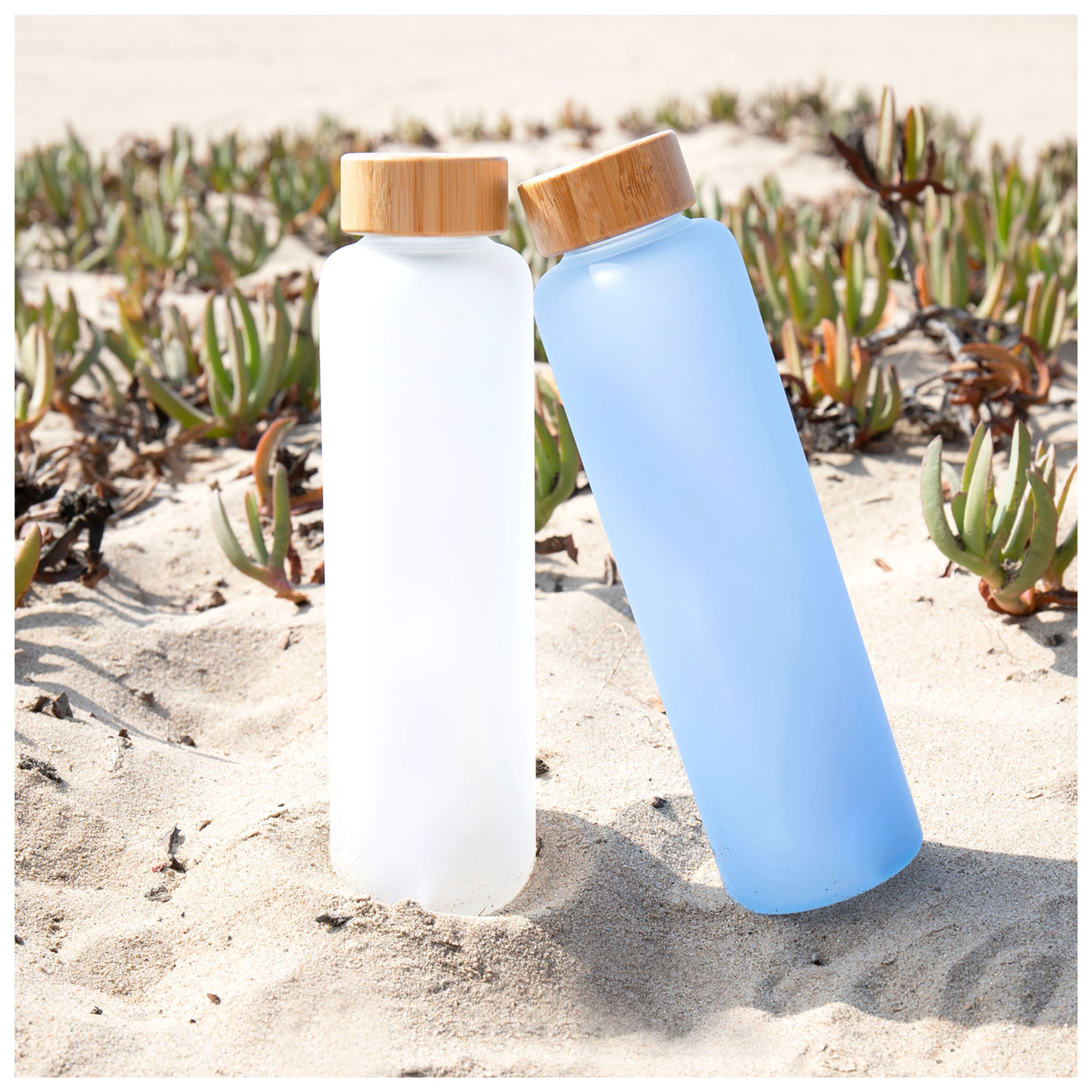 The h2go Rincon 18 oz glass bottle blends modern minimalism with eco-conscious design. Made from lightweight borosilicate glass, it features a threaded bamboo lid for a natural accent and a translucent soft-touch finish for a smooth, comfortable grip. Ideal for cold beverages, the Rincon is perfect for clean, sustainable hydration at home or on the go.