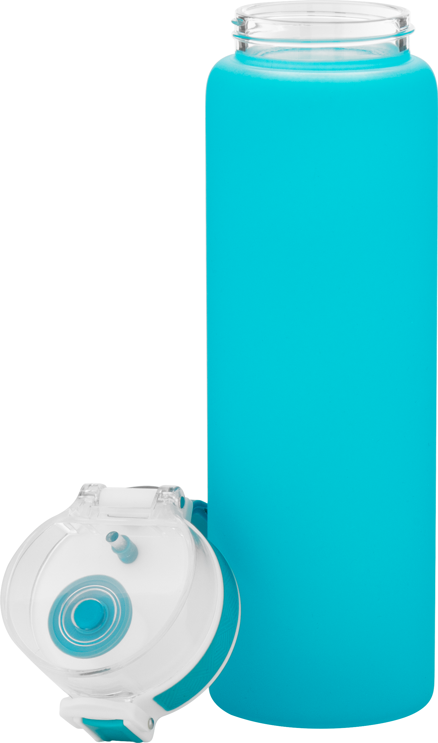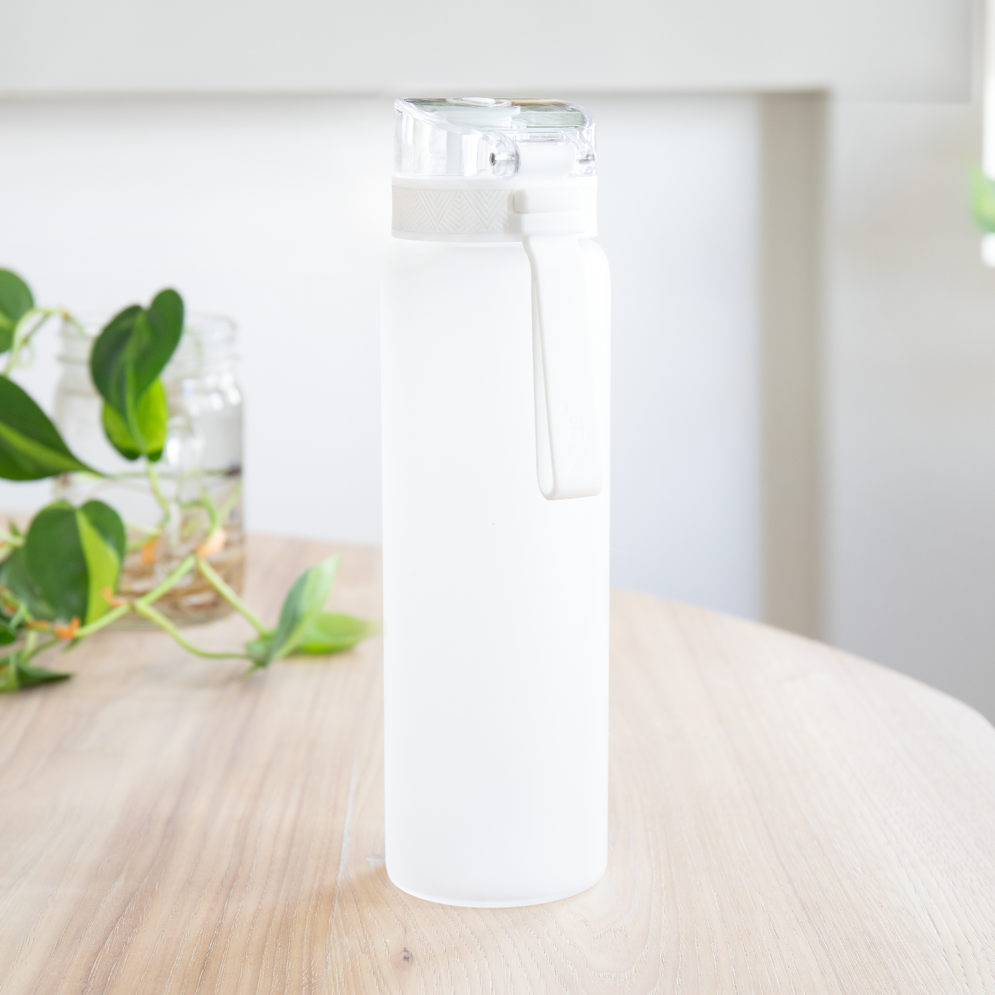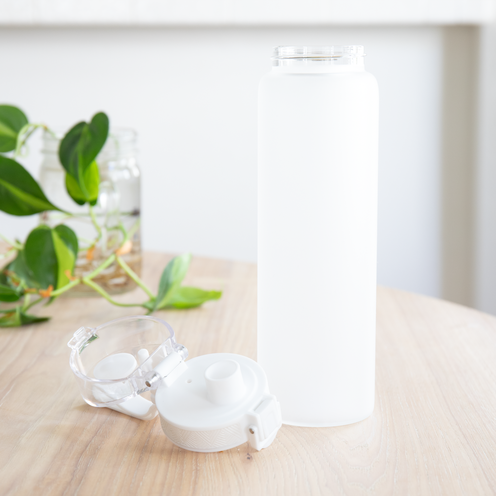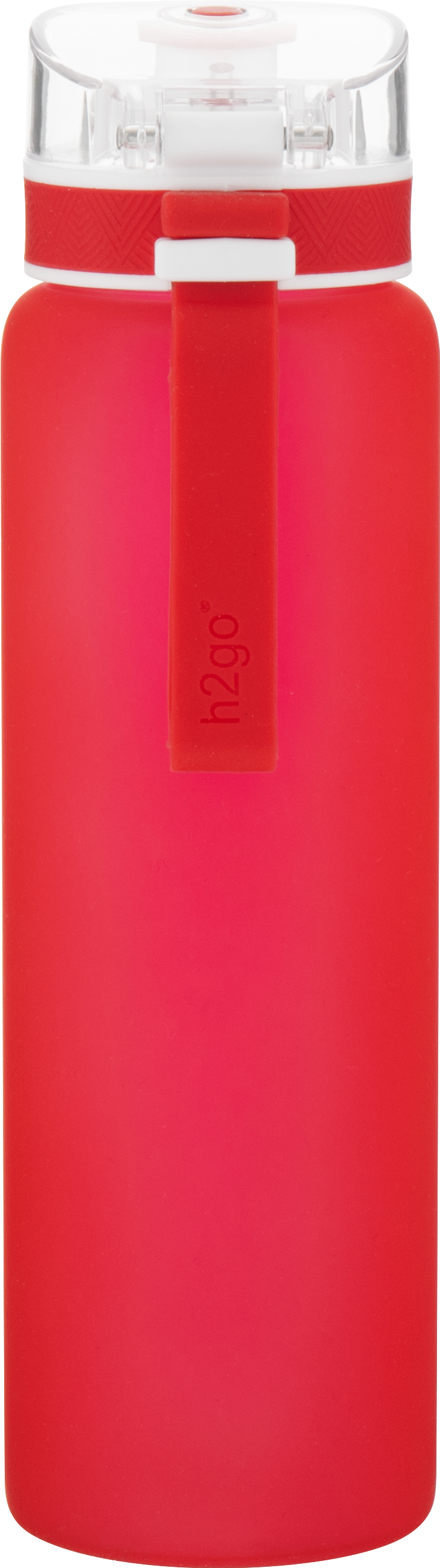 The h2go Mudra 20.9 oz glass bottle is designed for smooth, secure hydration throughout your day. Made from lightweight single wall borosilicate glass, it features a threaded one-touch push-button lid with a locking mechanism to help prevent leaks. A covered drinking spout keeps things clean, and the translucent soft touch finish provides a comfortable grip with a sleek, modern feel. Perfect for cold beverages at home, in the office, or on the go.