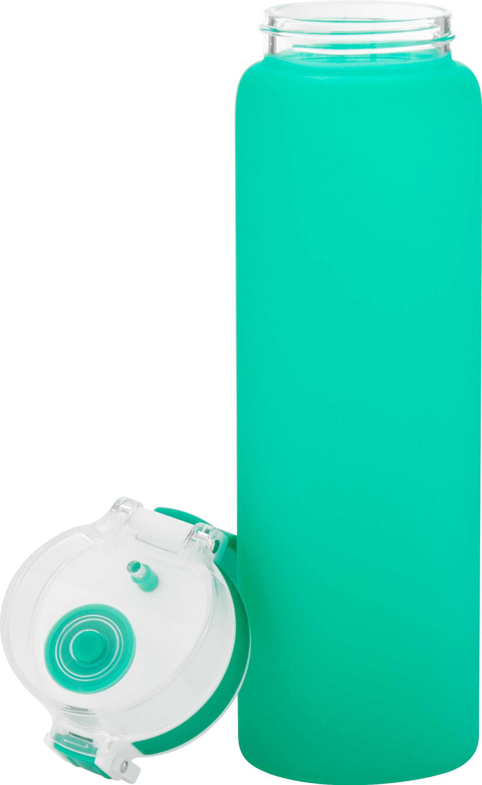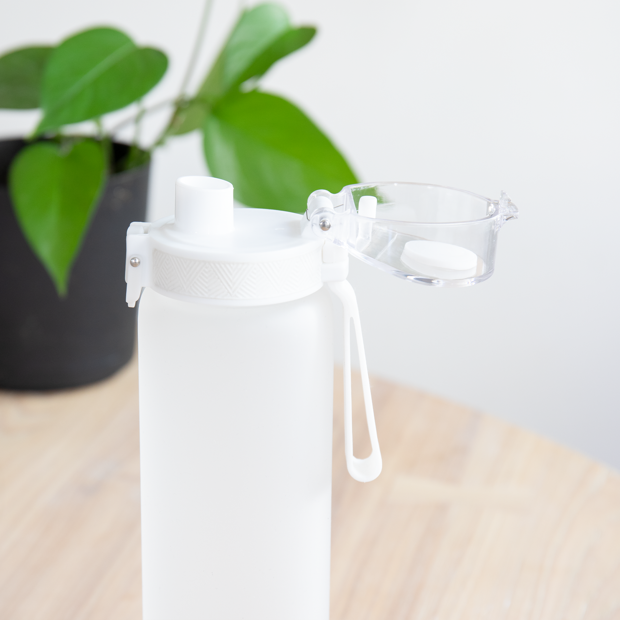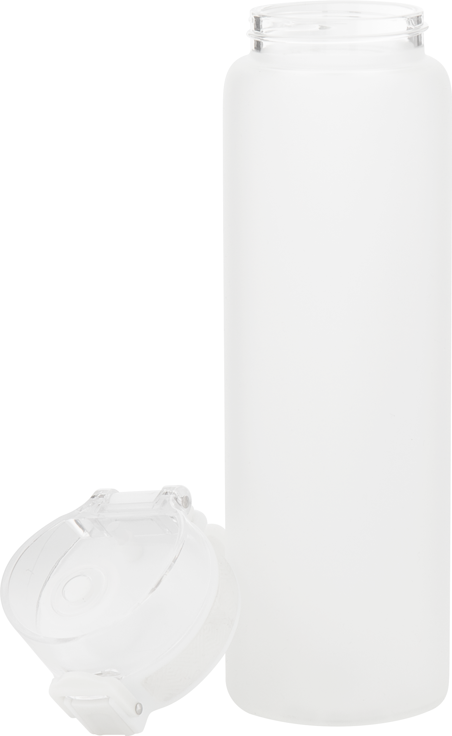 The h2go Mudra 20.9 oz glass bottle is designed for smooth, secure hydration throughout your day. Made from lightweight single wall borosilicate glass, it features a threaded one-touch push-button lid with a locking mechanism to help prevent leaks. A covered drinking spout keeps things clean, and the translucent soft touch finish provides a comfortable grip with a sleek, modern feel. Perfect for cold beverages at home, in the office, or on the go.