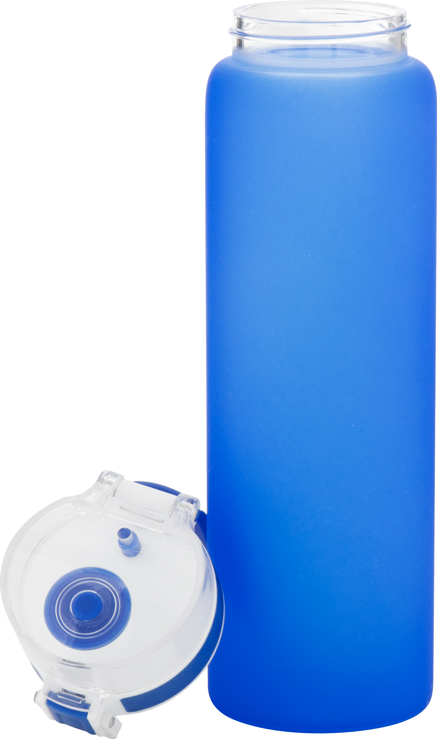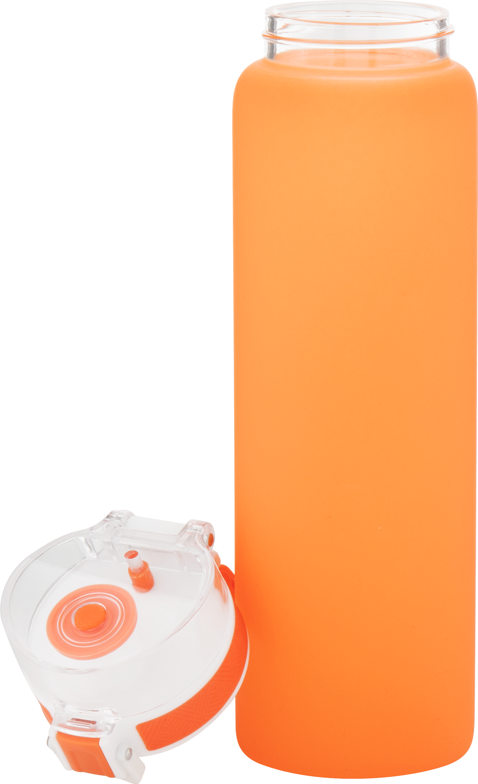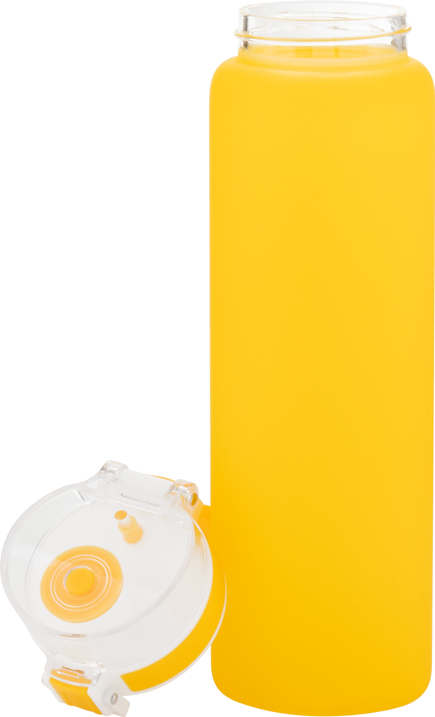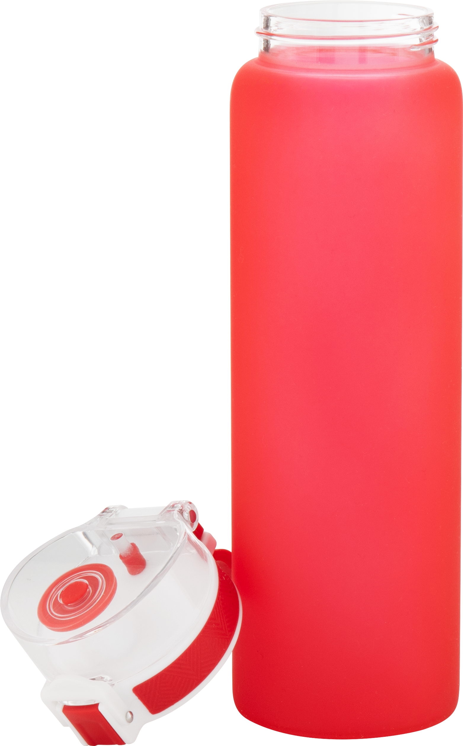 The h2go Mudra 20.9 oz glass bottle is designed for smooth, secure hydration throughout your day. Made from lightweight single wall borosilicate glass, it features a threaded one-touch push-button lid with a locking mechanism to help prevent leaks. A covered drinking spout keeps things clean, and the translucent soft touch finish provides a comfortable grip with a sleek, modern feel. Perfect for cold beverages at home, in the office, or on the go.