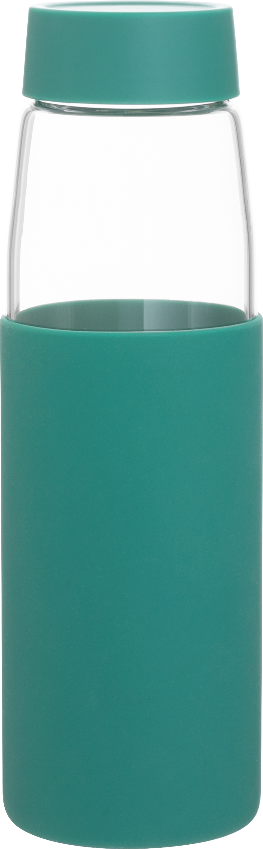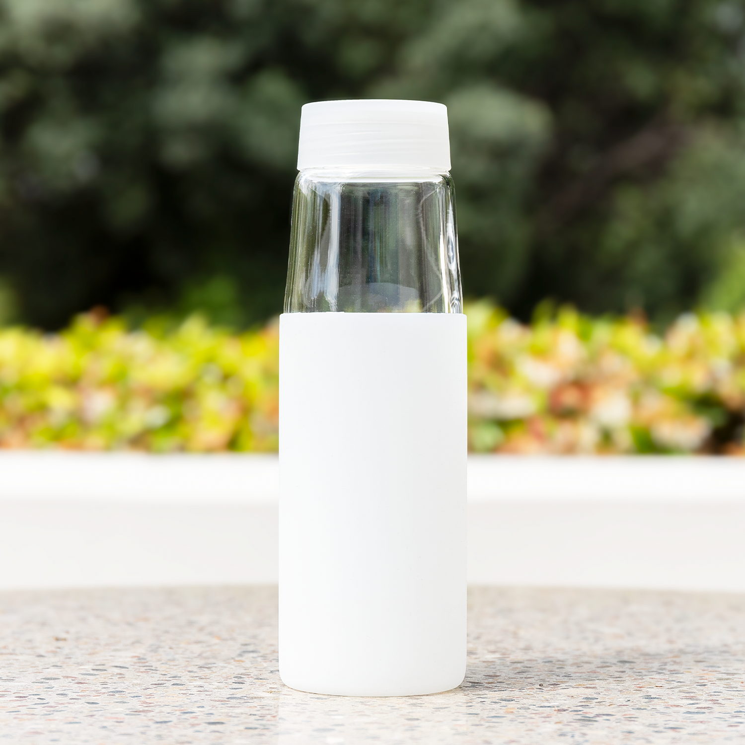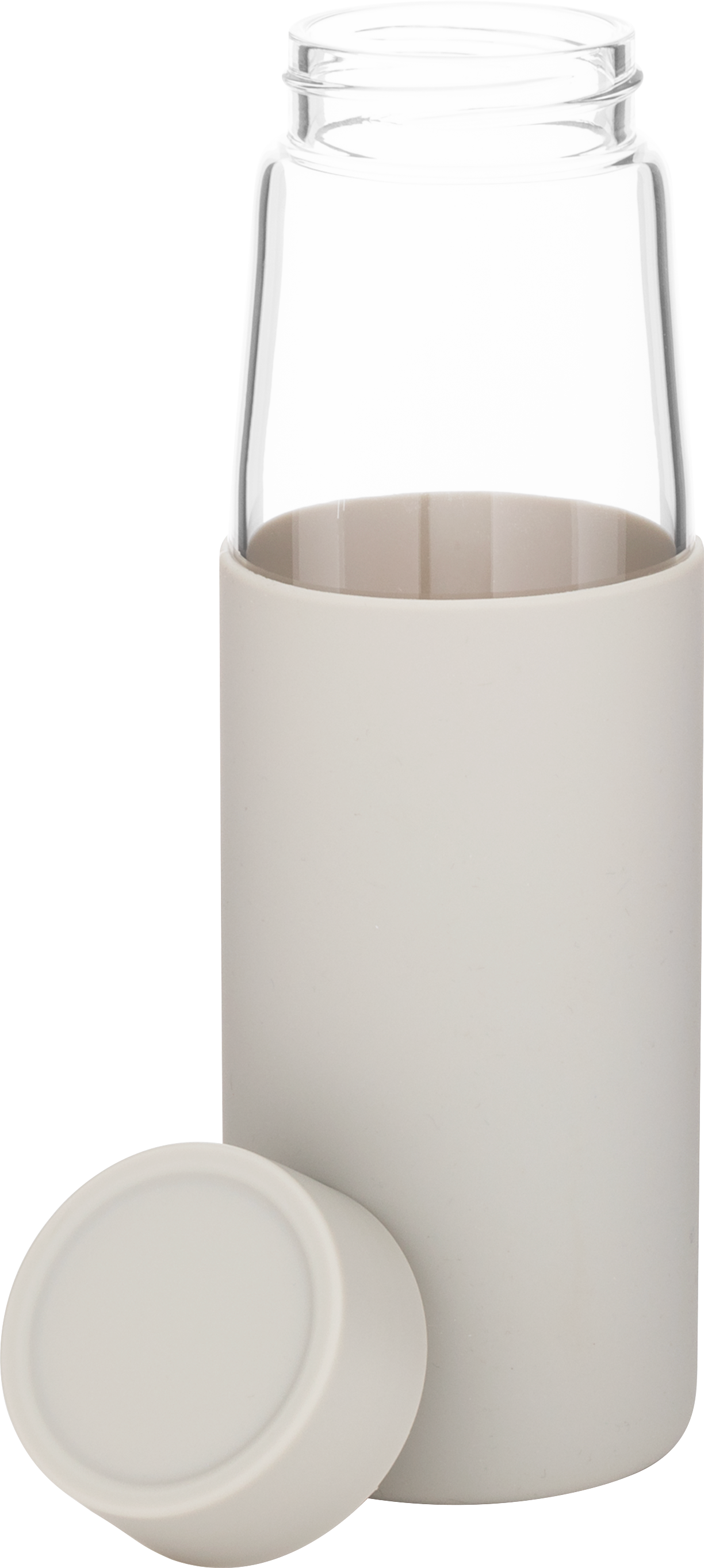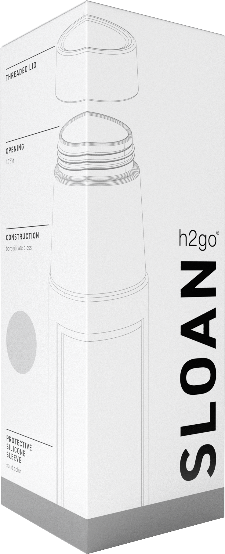 The h2go Sloan 20 oz glass bottle delivers clean, modern hydration with a stylish touch. Made from single wall borosilicate glass, it features a threaded lid for secure closure and a matching protective silicone sleeve for grip and impact resistance. Ideal for cold beverages at home, work, or on the go.