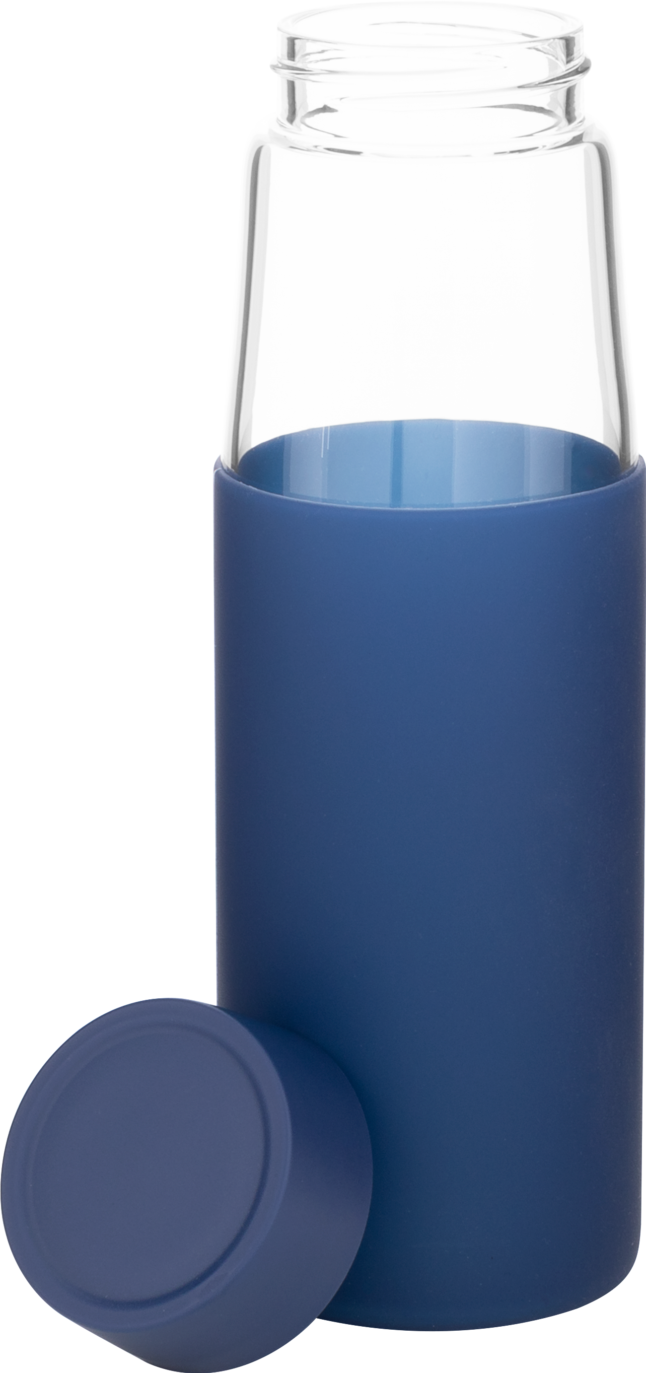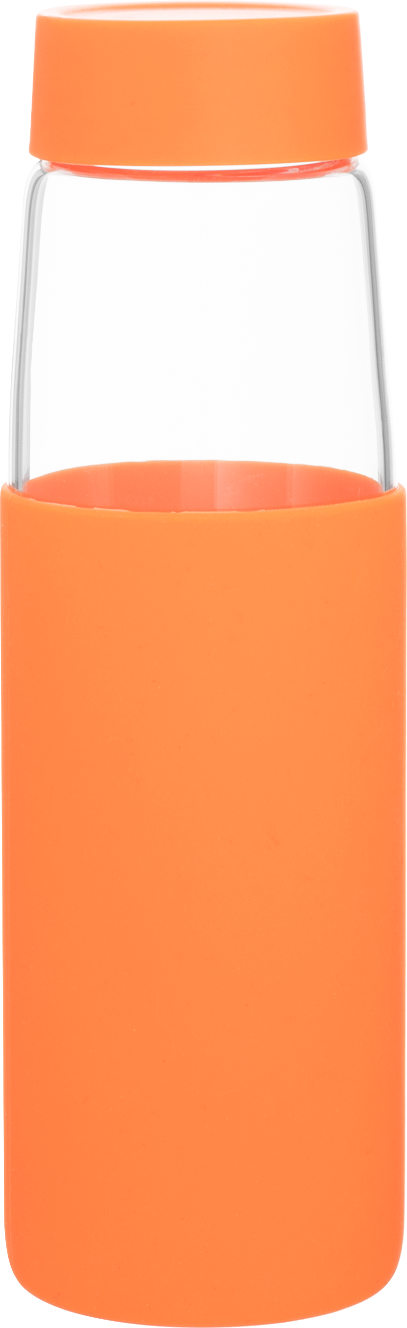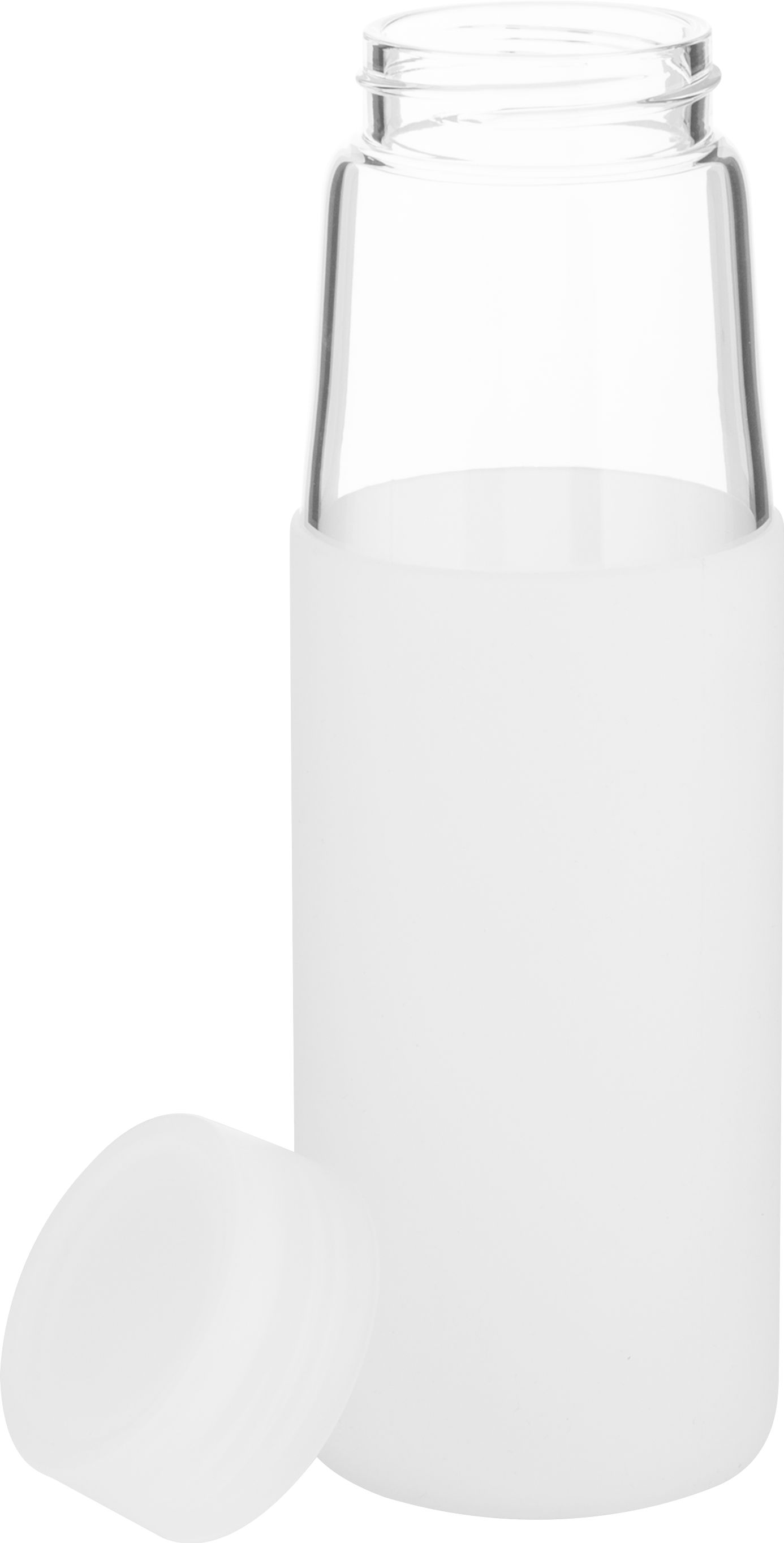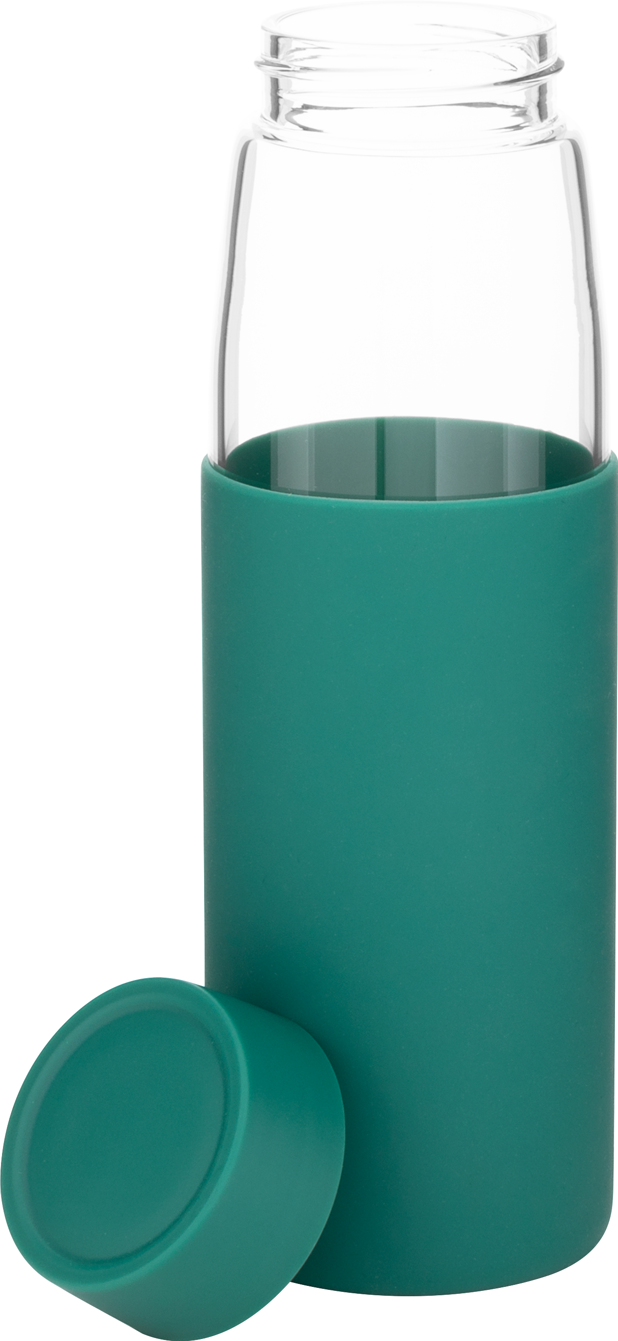 The h2go Sloan 20 oz glass bottle delivers clean, modern hydration with a stylish touch. Made from single wall borosilicate glass, it features a threaded lid for secure closure and a matching protective silicone sleeve for grip and impact resistance. Ideal for cold beverages at home, work, or on the go.