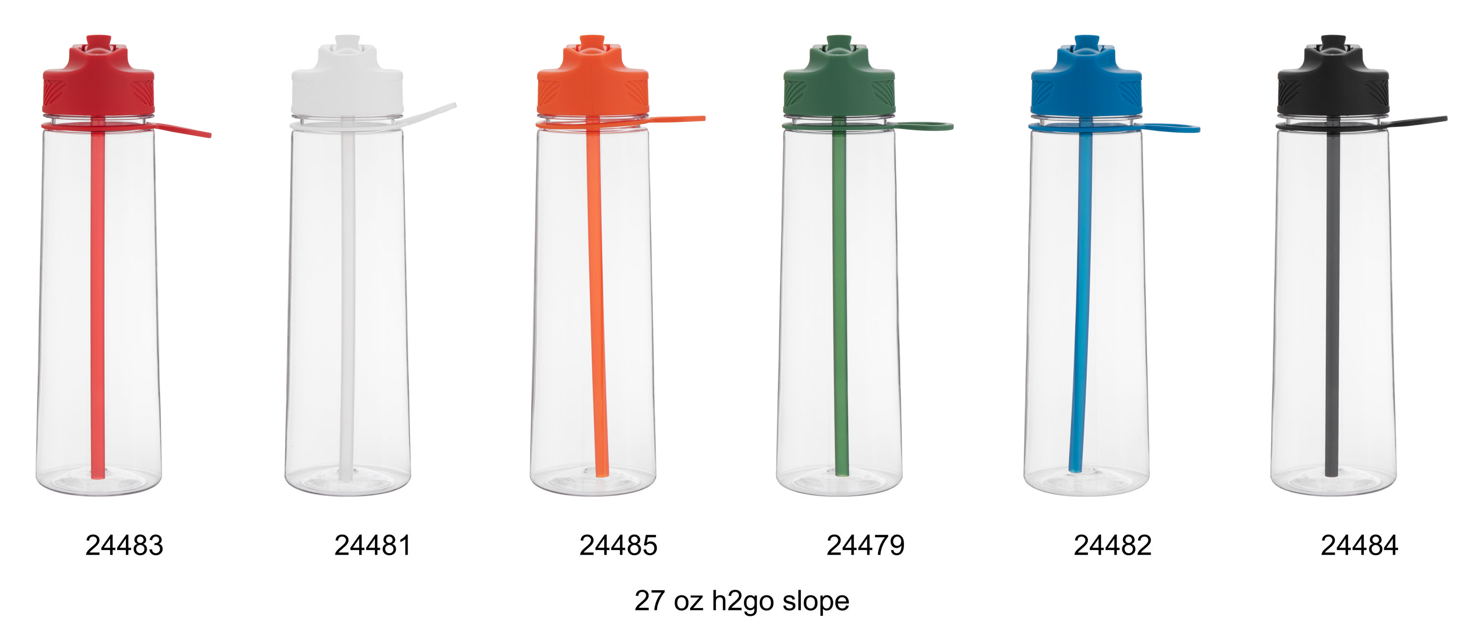 The h2go Slope 27 oz bottle is a lightweight hydration essential with convenient, drink-on-the-go features. Made from BPA-free copolyester, this single wall bottle includes a threaded lid with a flip-up spout and a matching carrying loop for easy transport. Perfect for cold beverages at the gym, the office, or wherever the day takes you.