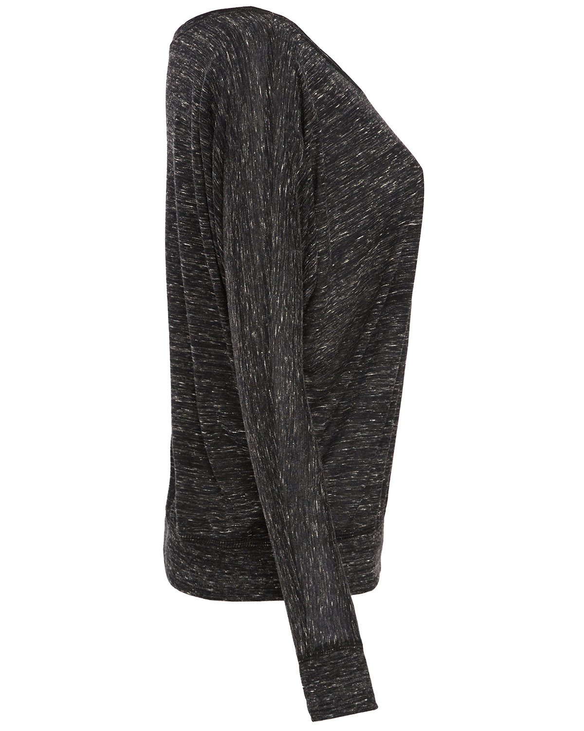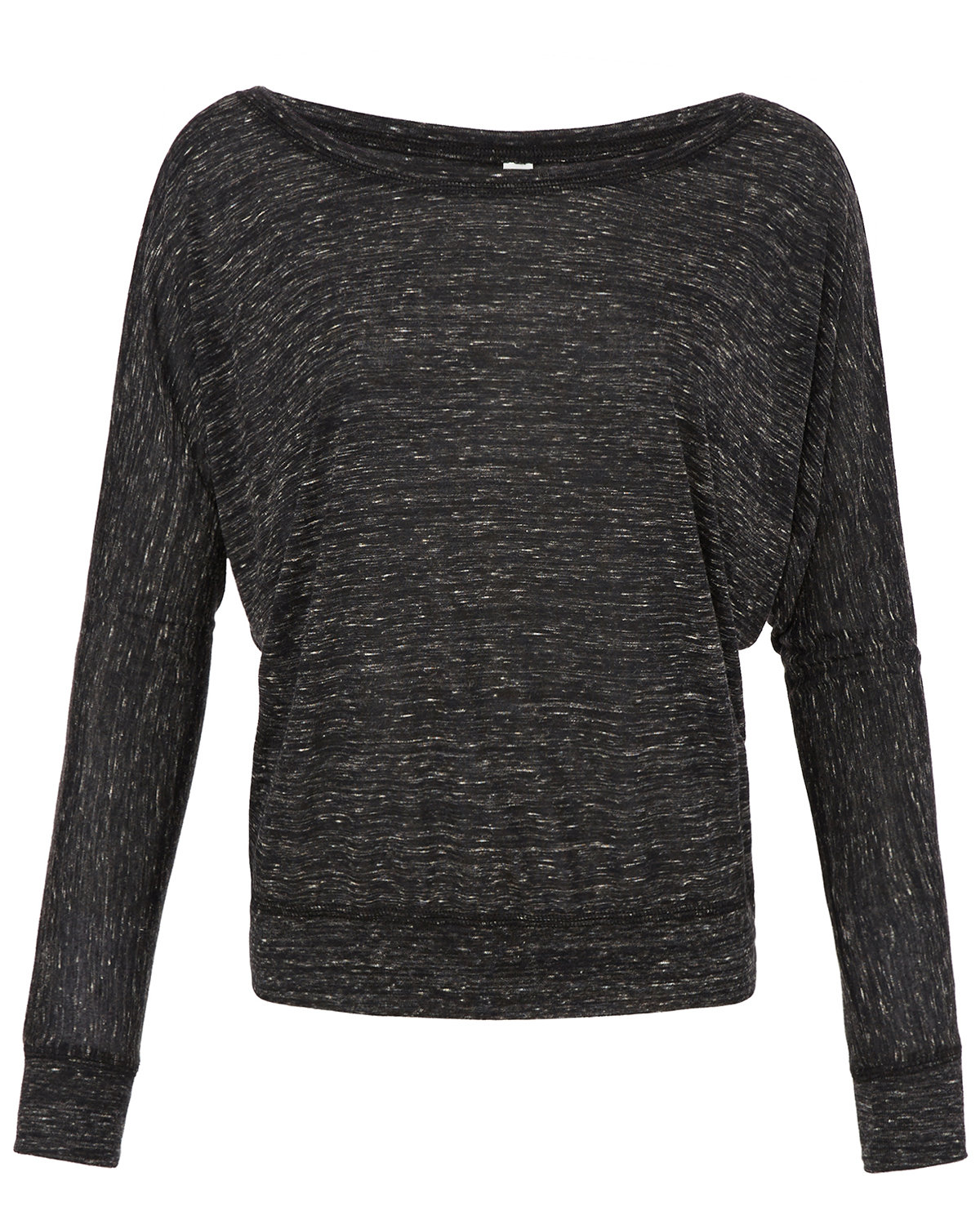 3.7 oz., 65% polyester, 35% viscose; 30 singles; Athletic Heather - 3.5 oz., 52/48 poly/viscose; Marbles -91/9 poly/cotton;Easy, drapey fit; Dolman sleeves; Sideseamed; Seam up center back; Ribbed cuffs & waistband; Tear away label; BELLA+CANVAS uses sustainable manufacturing processes with Blue Sign certified dyes, efficient dye houses that adhere to the state of California’s EPA regulations around waste water treatment and usage, and cutting facilities in Los Angeles that run on partial solar power with comprehensive recycling programs for paper waste and fabric scraps.;