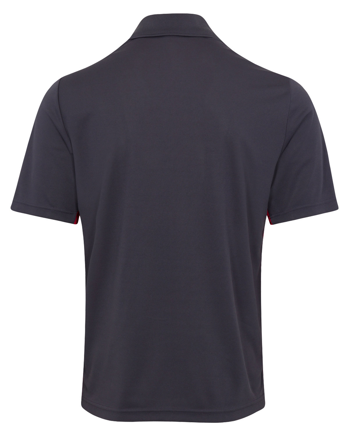 4.1 oz/yd² / 139 gsm, 100% polyester piqué with moisure-wicking, anti-microbial and UV protection performance;Matching flat-knit collar; Three-button placket; Side slits;