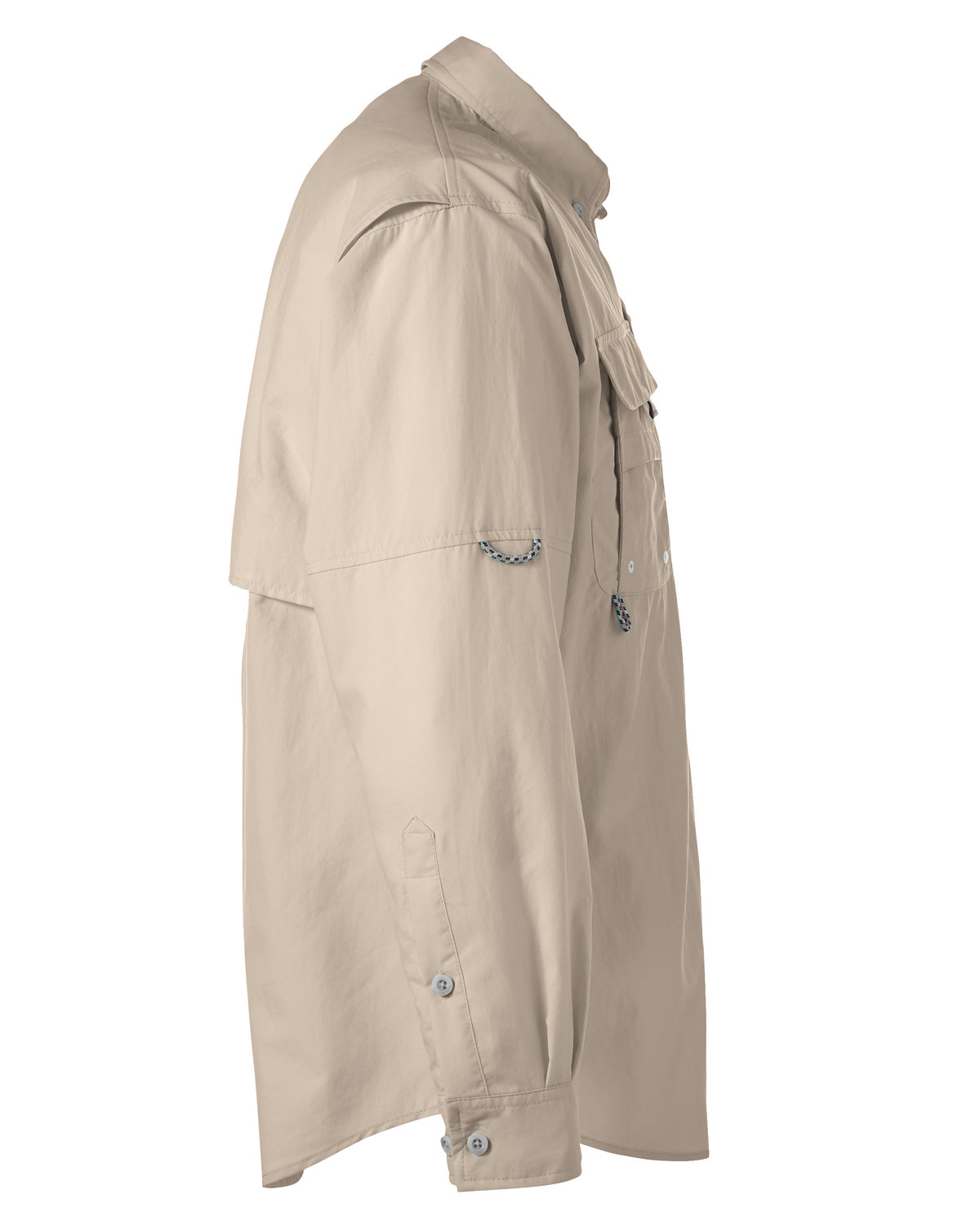 3 oz., 100% Tactel® nylon taffetta back country cloth; Quick dry; Omni-Shade™ UPF 50 sun protection;Performance fishing gear; Button-down collar; Roll-up sleeves with tab holders; Vented; Utility loop; Columbia PFG logo patch on rod holder on left chest; Embroidered Omni-Shade logo on upper left sleeve; PFG logo patch on center back;