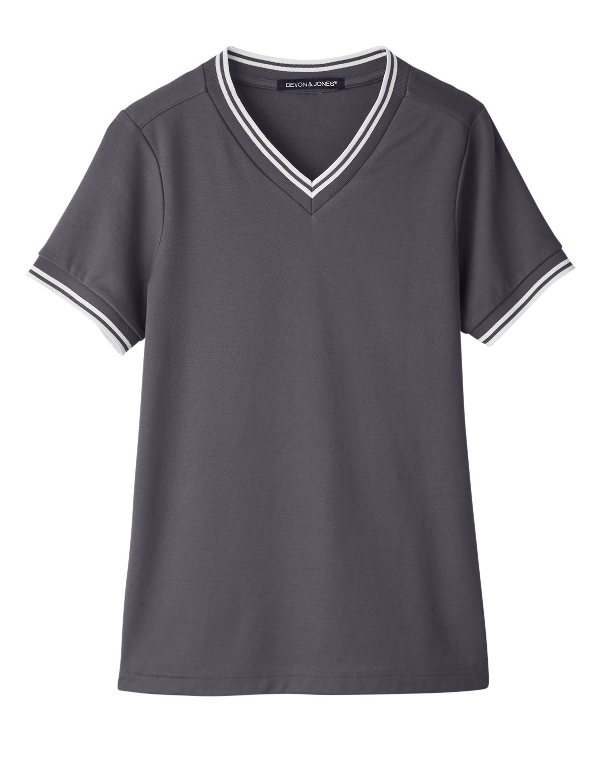 Devon & Jones CrownLux Performance® Ladies' Plaited Tipped V-Neck Top DG20CW