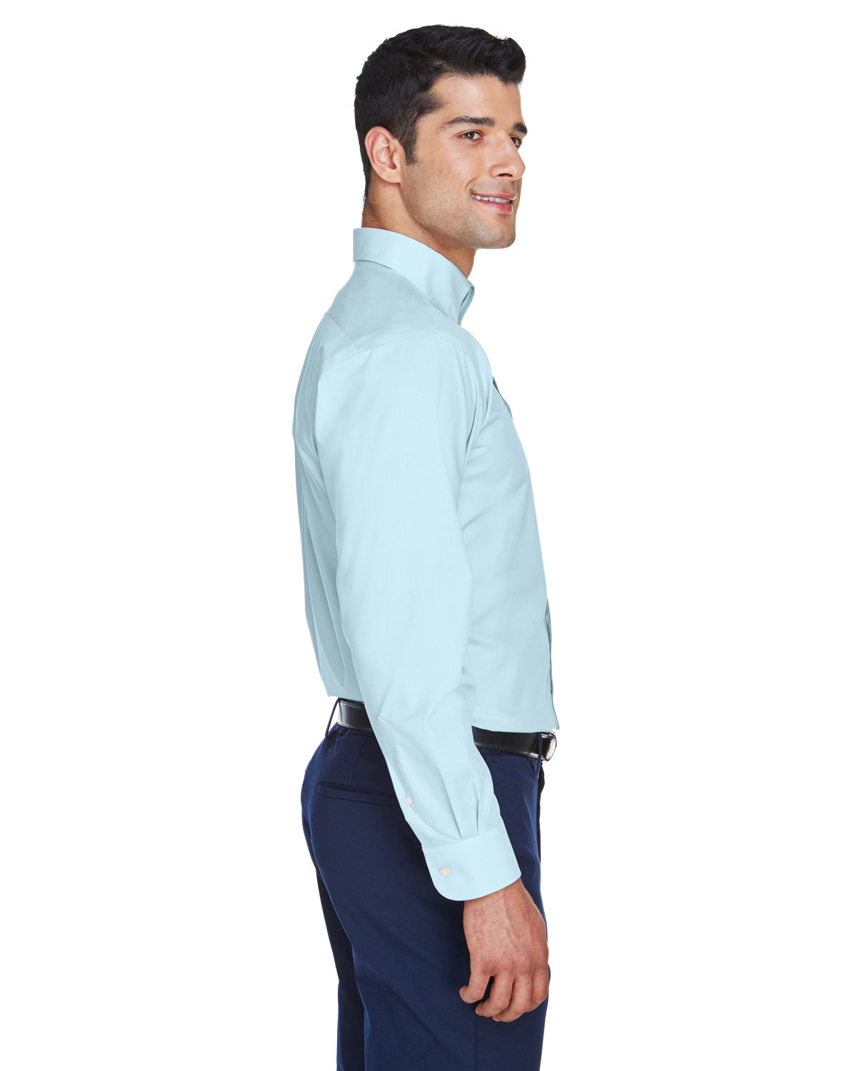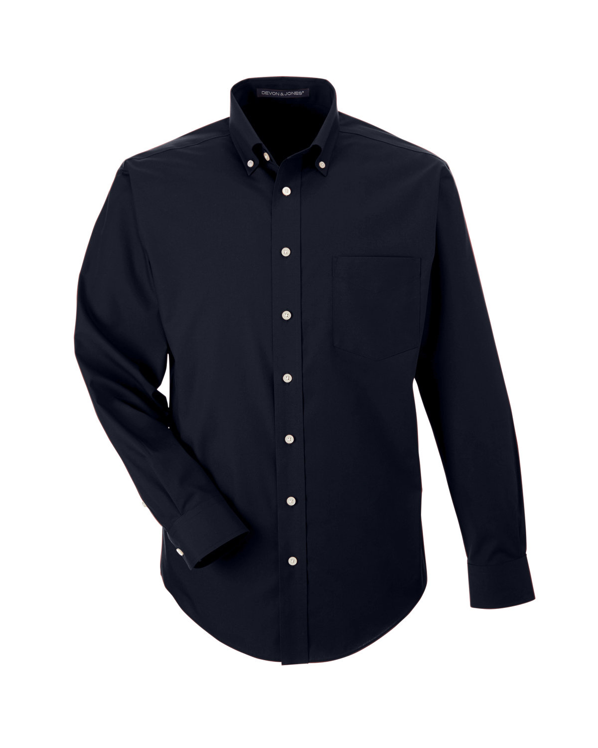 3.4 oz., 55% cotton, 45% polyester broadcloth; true non-iron performance straight from the dryer; stain release finish;fine yarn count shirting with pearlized buttons; patented pucker-free taped seams; specially fused collar, cuffs and placket; split back seam with bias cut back yoke; classic fit for professional appearance; rolled button-down collar; adjustable "Comfort Collar" gives up to an inch stretch at neck; left-chest pocket;