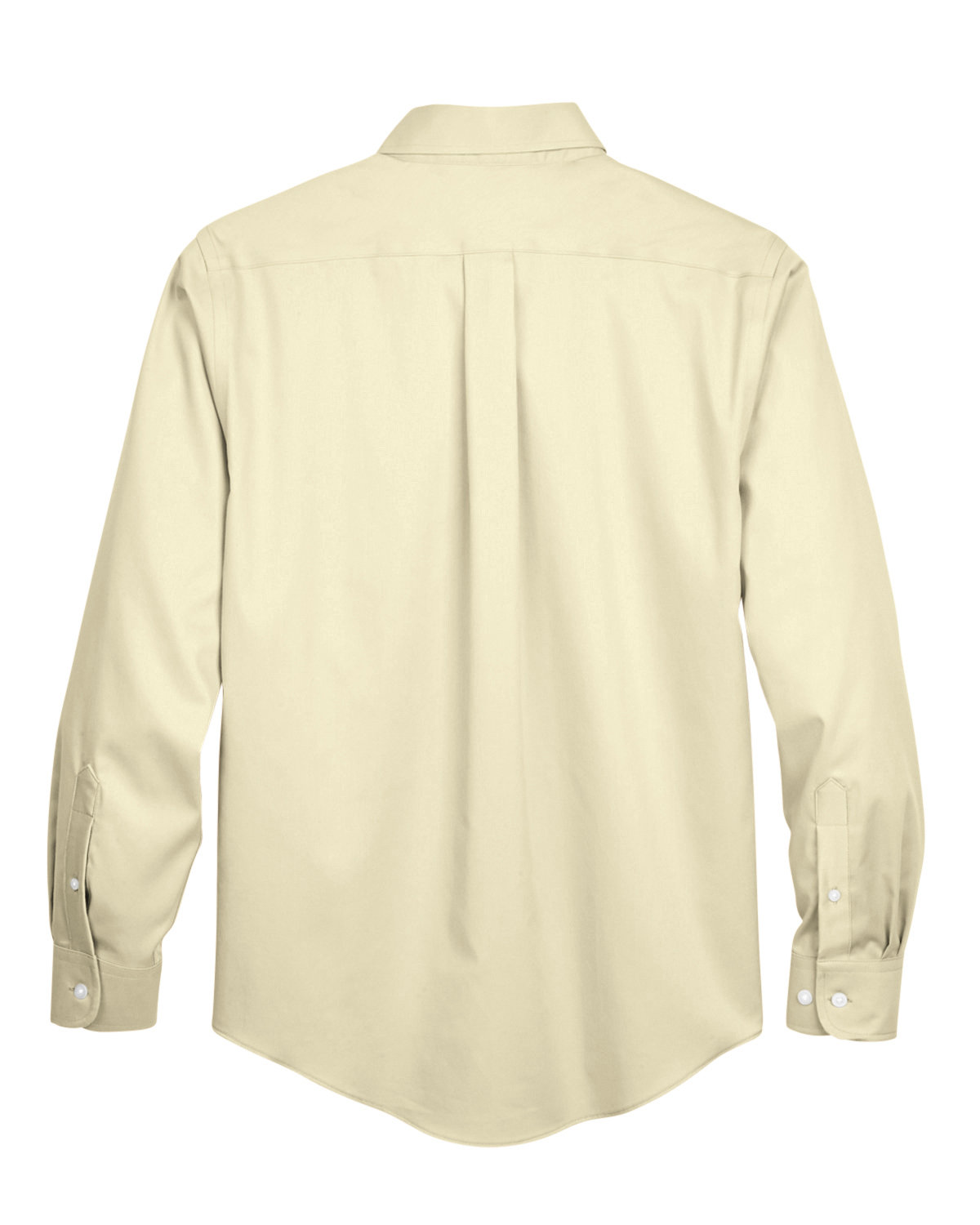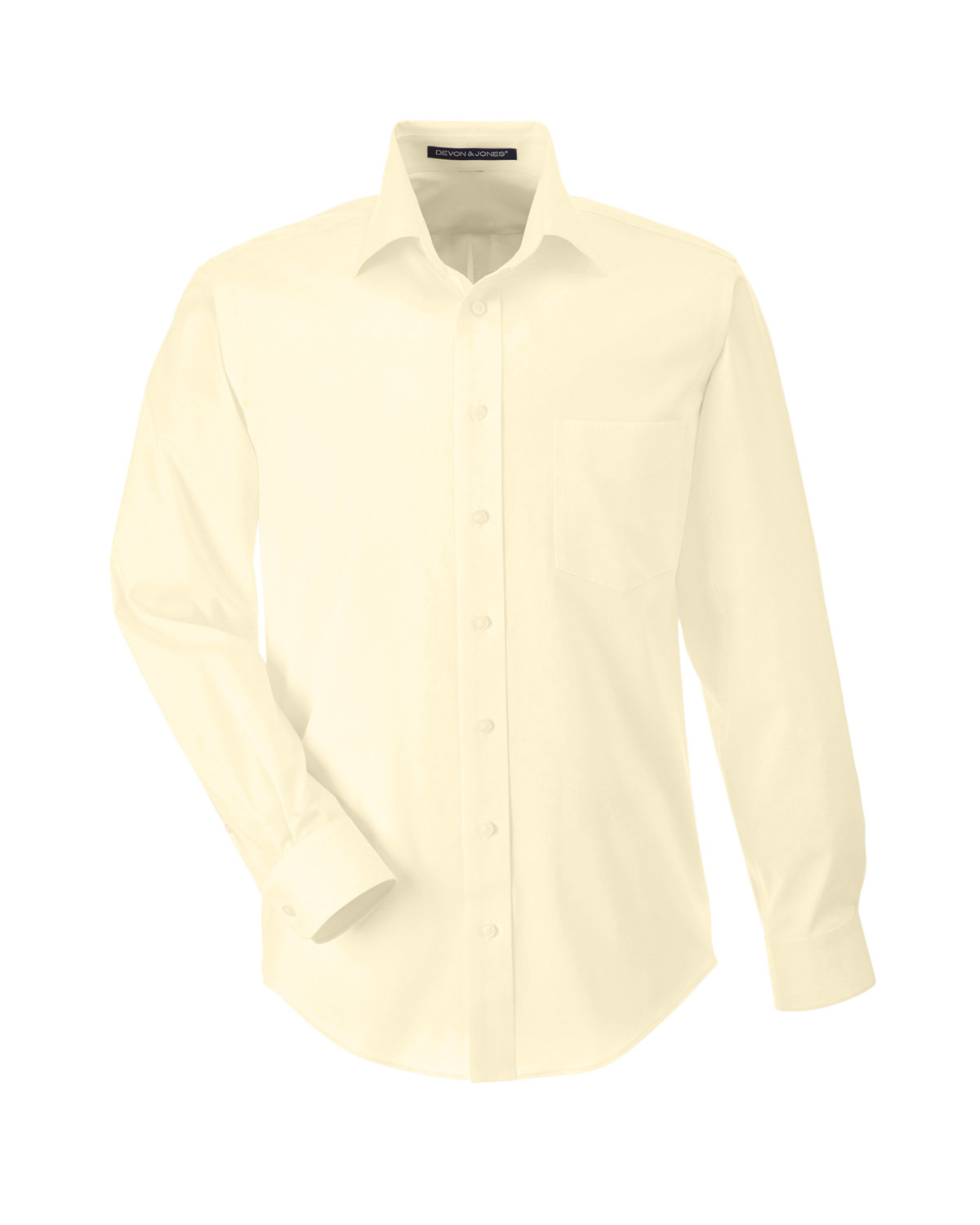 3.5 oz., 53% cotton, 43% polyester, 4% lycra; Fine yarn count shirting; True Non-iron performance straight from the dryer; stain release finish;Active Fit; Patented pucker-free taped seams; Fused collar, cuffs, and placket; Split back seam with bias cut back yoke; Straight collar with built-in collar stays; adjustable Comfort Collar for up to an inch of stretch at neck; left-chest pocket; pearlized buttons;
