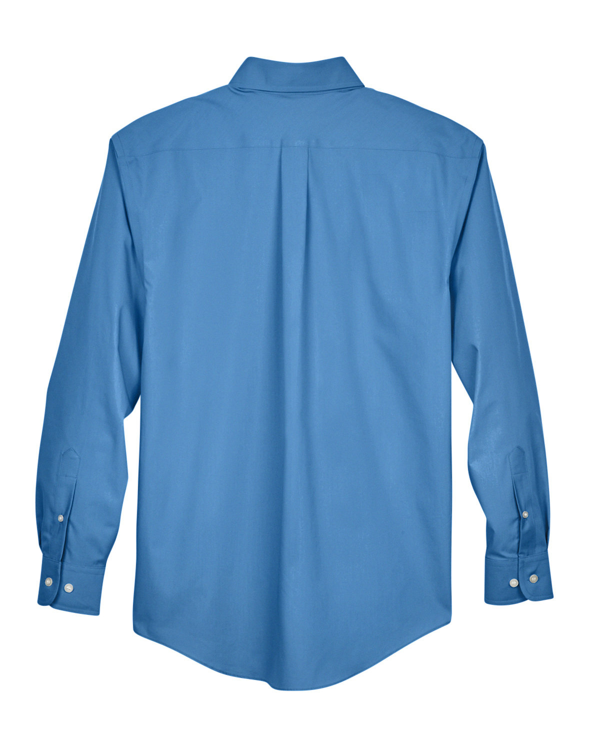 3.5 oz./ydý / 115 gsm, 55% cotton, 45% polyester broadcloth; fine yarn count shirting; true Non-iron performance straight from the dryer; stain release finish;Classic Fit for professional appearance; pearlized buttons; patented pucker-free taped seams; specially fused collar, cuffs and placket; bias cut back yoke; straight collar; left-chest pocket;