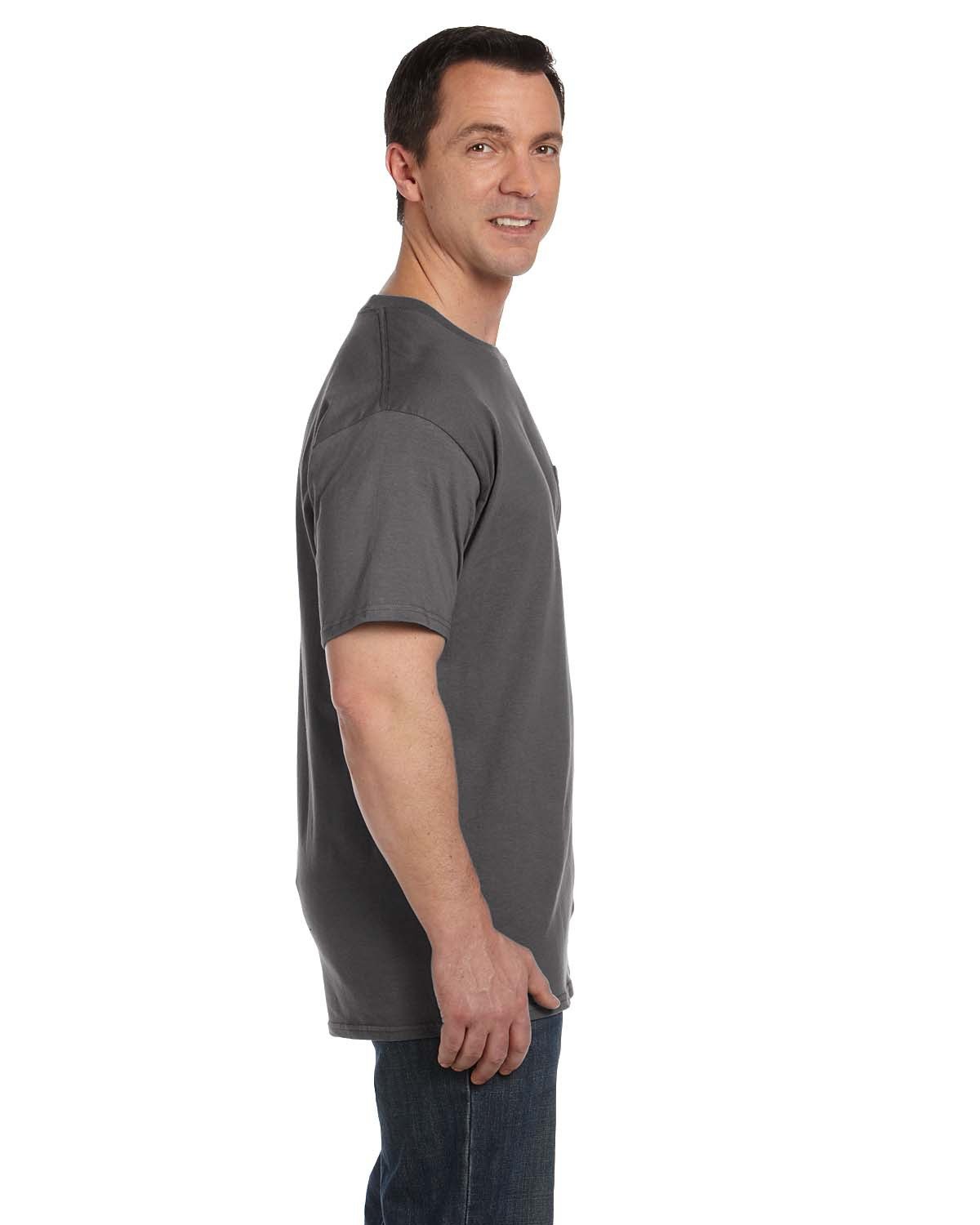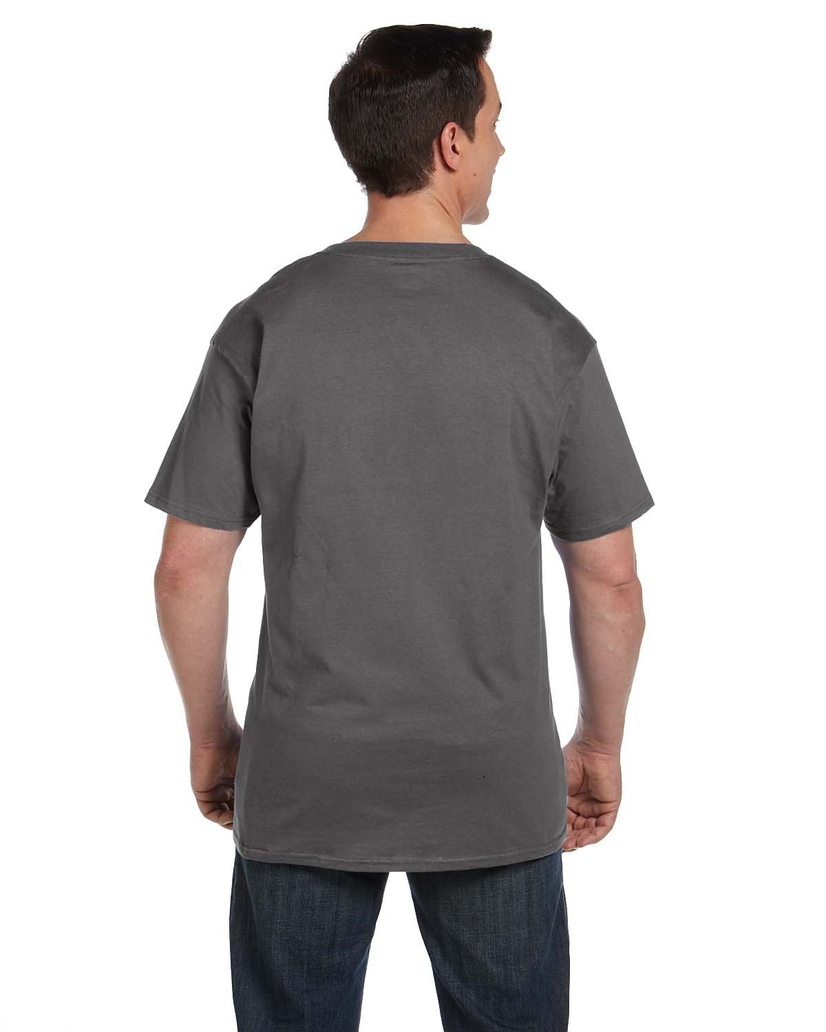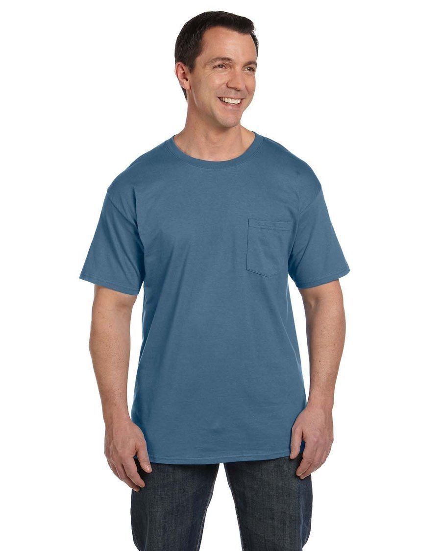 6.1 oz., 100% ringspun cotton; Ash is a 99/1 blend; Light Steel is a 90/10 blend; Safety Green & Orange, Charcoal Heather & Oxford Gray are 60/40 blends; Made with sustainably sourced USA grown cotton;Double-needle stitching throughout; Coverseamed neck with lay flat collar; Shoulder-to-shoulder tape; Five-point left-chest pocket; Tear-away label; "A-" list status from CDP (Carbon Disclosure Project); Energy Star Partner of the Year (14 consecutive years); Every piece of Hanes apparel purchased from our company qualifies for Hanes4Education;