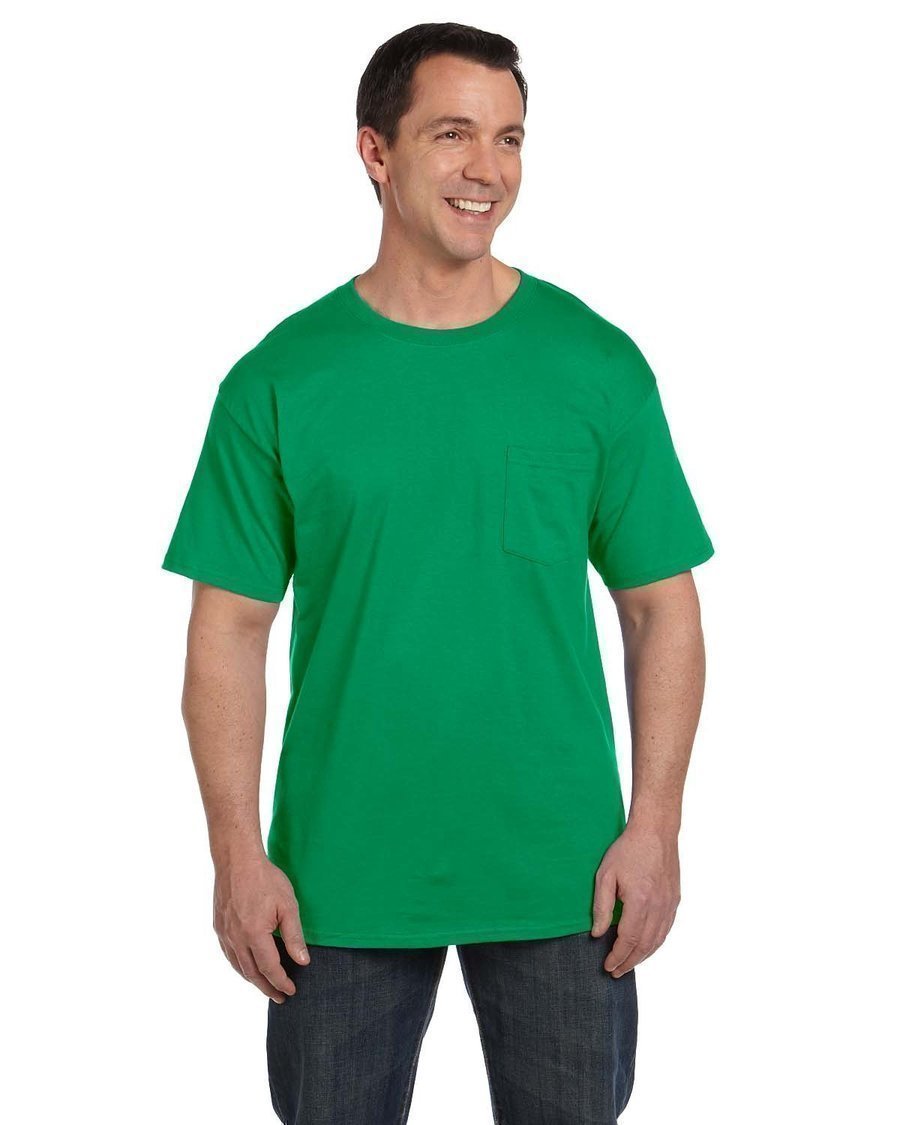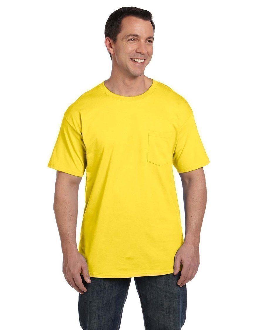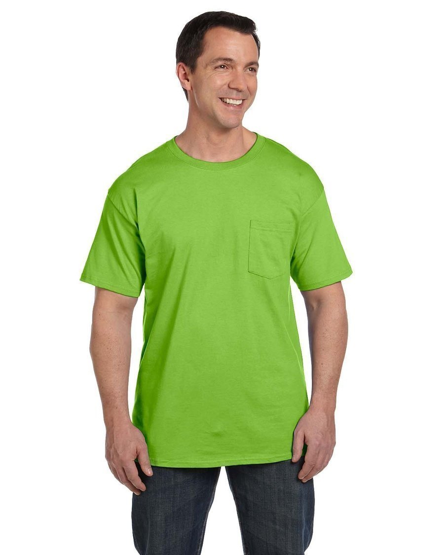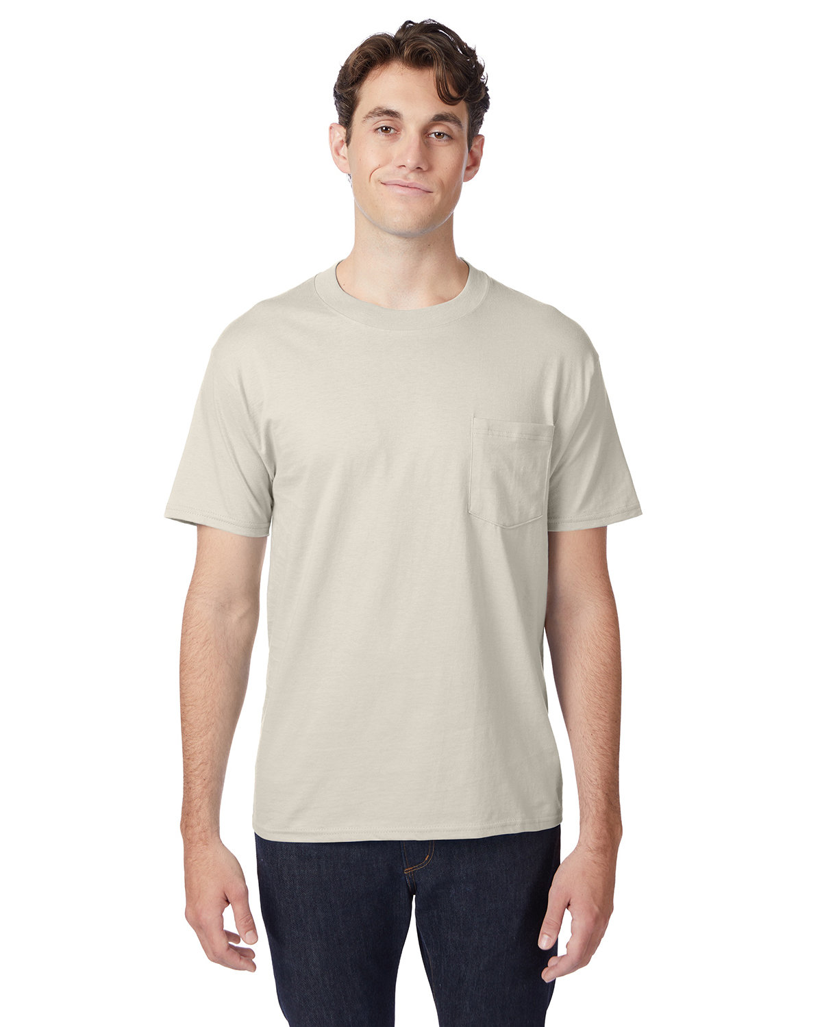 6.1 oz., 100% ringspun cotton; Ash is a 99/1 blend; Light Steel is a 90/10 blend; Safety Green & Orange, Charcoal Heather & Oxford Gray are 60/40 blends; Made with sustainably sourced USA grown cotton;Double-needle stitching throughout; Coverseamed neck with lay flat collar; Shoulder-to-shoulder tape; Five-point left-chest pocket; Tear-away label; "A-" list status from CDP (Carbon Disclosure Project); Energy Star Partner of the Year (14 consecutive years); Every piece of Hanes apparel purchased from our company qualifies for Hanes4Education;