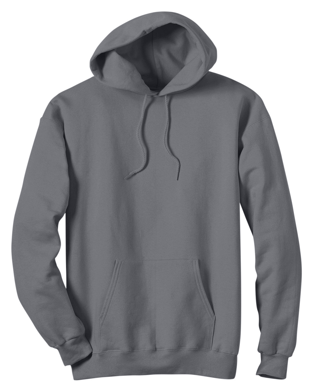 9.7 oz., 90% cotton, 10% polyester; Light Steel is 85% cotton, 15% poly; Charcoal Heather is 65/35%; Made with sustainably sourced USA grown cotton;Low-pill, high-stitch density PrintPro® XP fabric with 100% cotton face; Jersey-lined two-ply hood with dyed-to-match drawcord; Roomy front pouch pocket; Double-needle coverseamed armholes and waistband; Cotton/polyester/spandex cuffs and relaxed waistband; Tear-away label; "A-" list status from CDP (Carbon Disclosure Project); Energy Star Partner of the Year (14 consecutive years); Every piece of Hanes apparel purchased from our company qualifies for Hanes4Education;