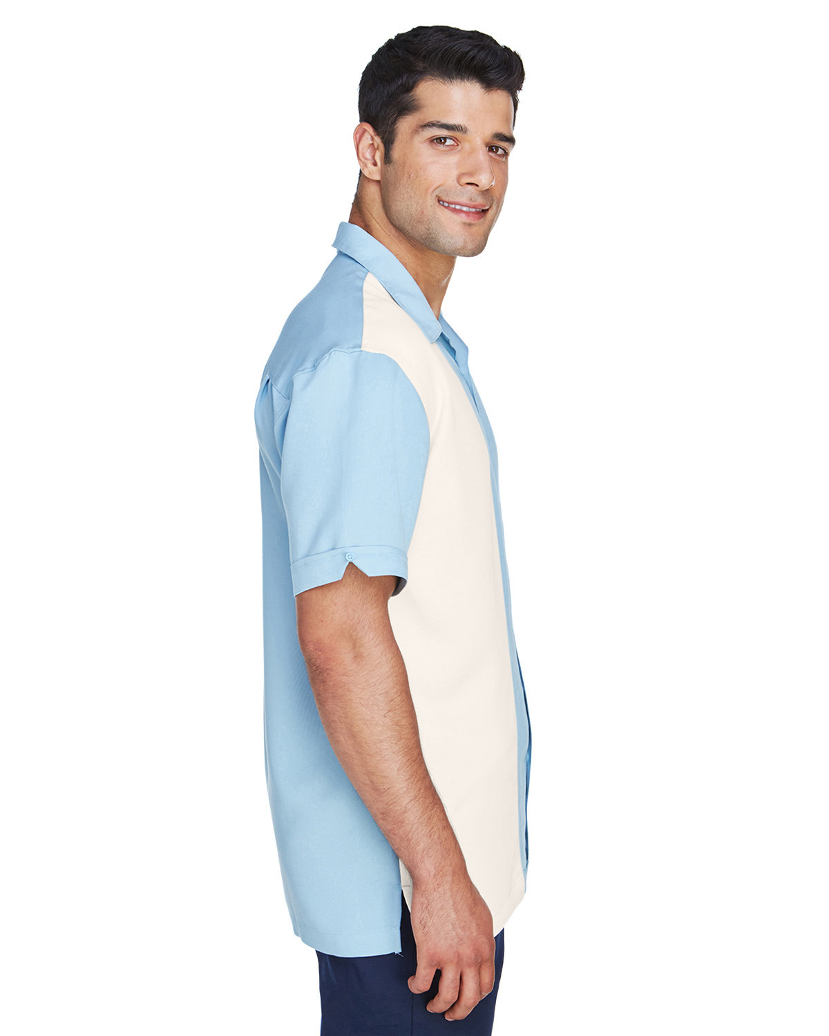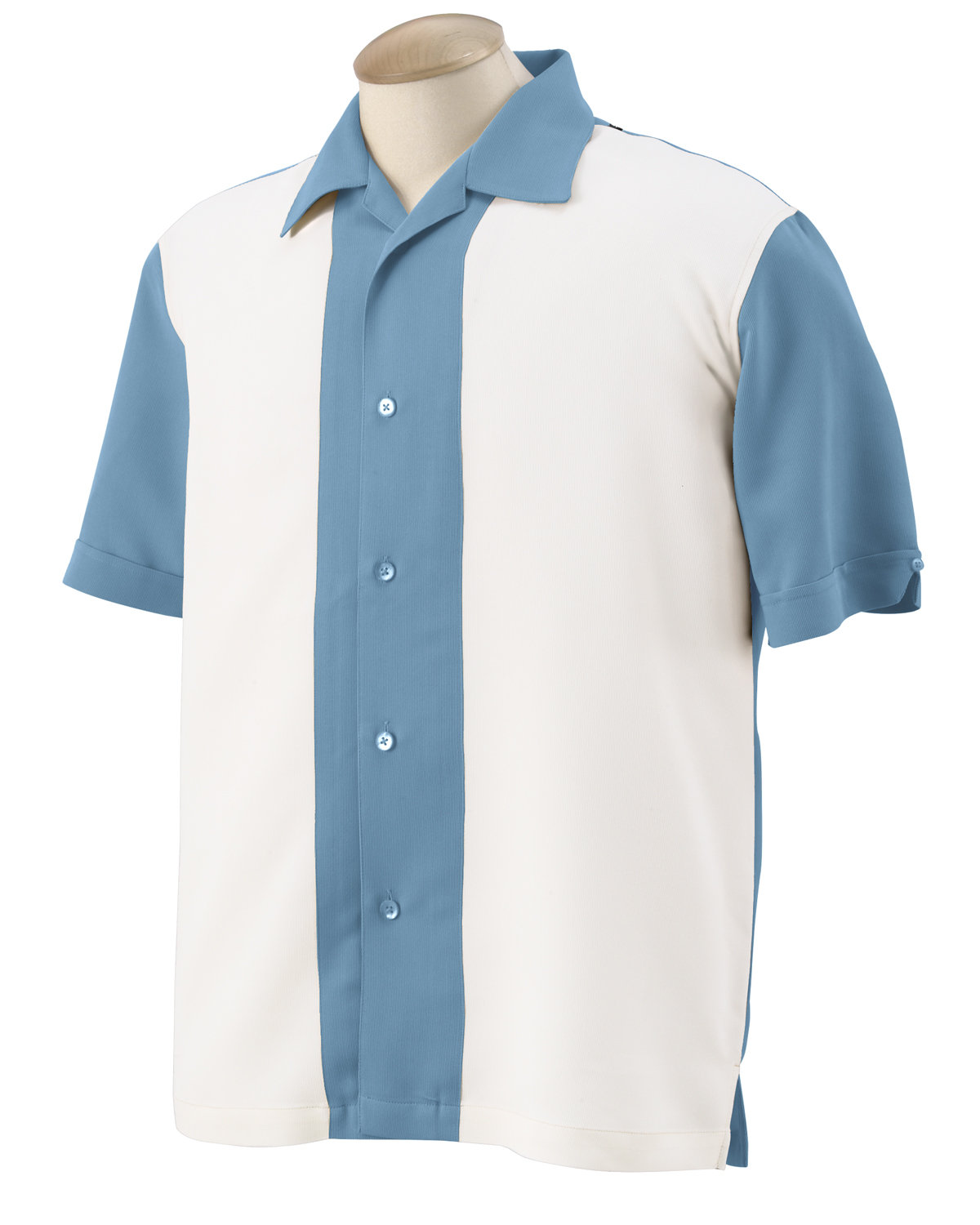 5 oz/yd2,186 gsm; 66% rayon, 34% polyester pieced bedford cord; Wrinkle-resistant;Full-button front; Dyed-to-match buttons; Replacement buttons; Self-fabric collar; Contrast panels;