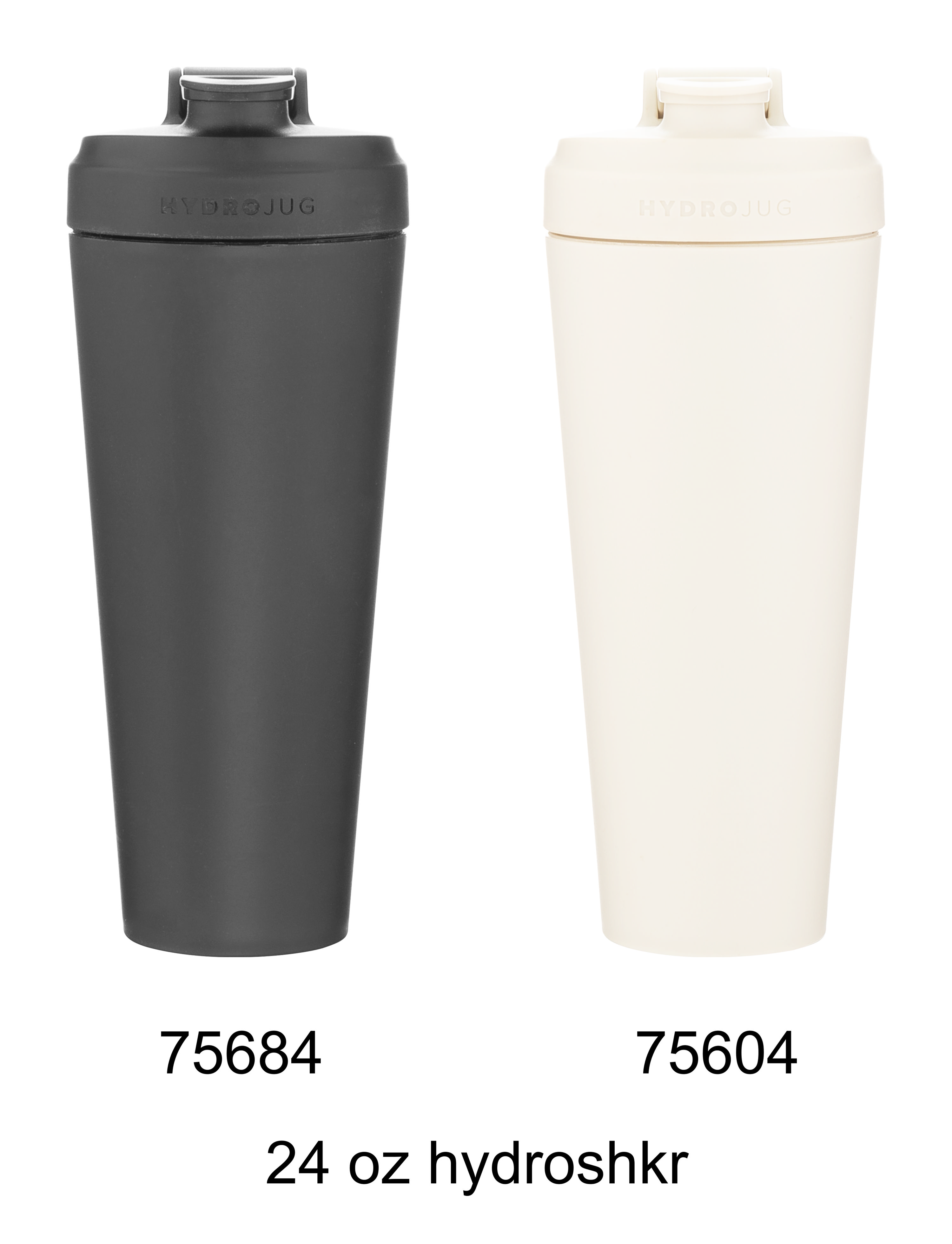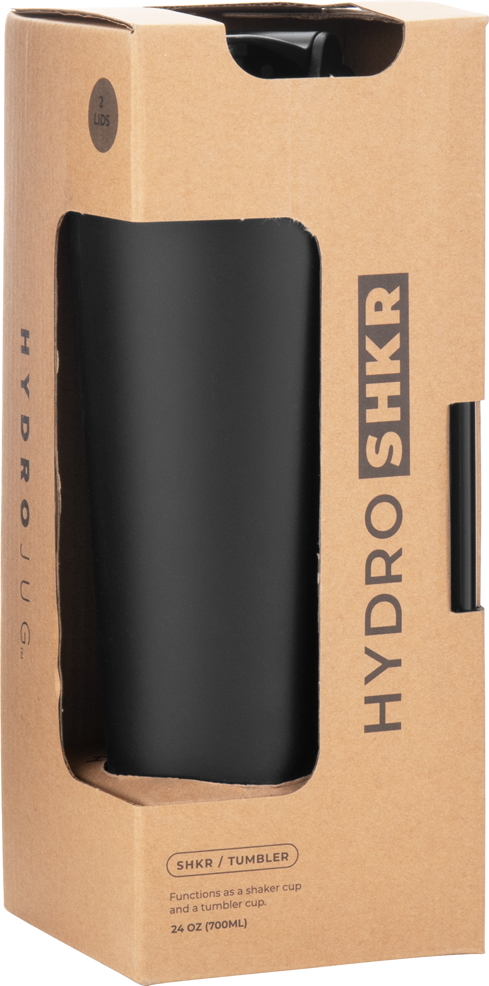 The Hydroshkr 24 oz shaker bottle is designed for cold beverages and versatile use—from pre-workout mixes to daily hydration. Made from durable, BPA-free double wall plastic, it features two interchangeable threaded lids: one with a snap closure and one with a strap opening. A built-in straw and shakr grate ensure smooth mixing, while a silicone base pad adds grip and stability. Finished with a soft matte exterior for a clean, modern look.