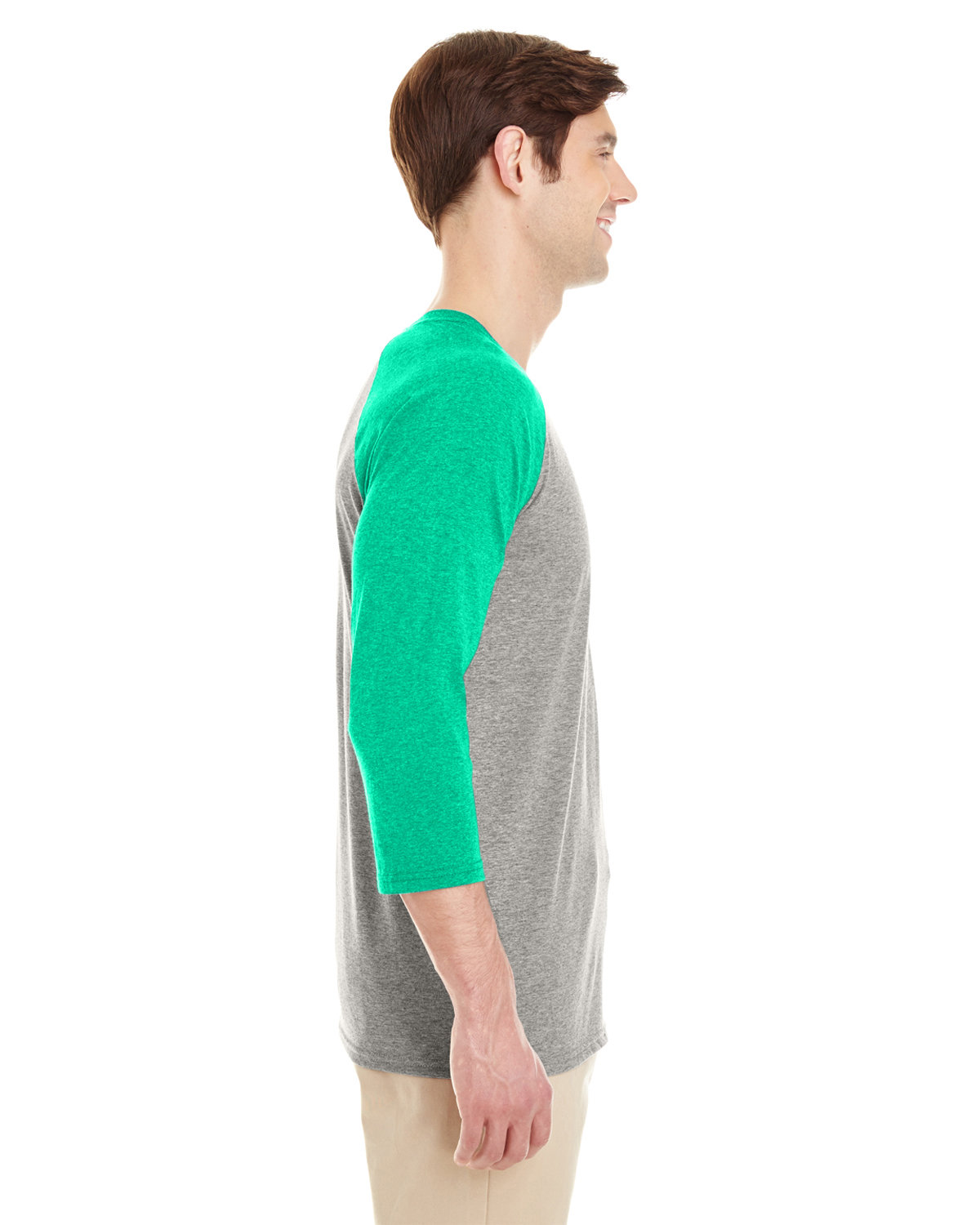 4.5 oz., 50% polyester, 37% cotton, 13% rayon preshrunk jersey; Soft, lightweight jersey with moisture wicking properties; Made with sustainably sourced USA grown cotton;Contrast collar and three-quarter raglan sleeves; Seamless 1x1 rib collar with two-needle coverstitching around neck; Tear away label; Side-seamed; Two-needle hemmed sleeves and bottom; Jerzees styles are manufactured using sustainable protocols which are measured and reported annually by Fruit of the Loom, Inc.; Jerzees styles are manufactured with the commitment to enriching lives for people and communities which is measured and reported annually by Fruit of the Loom, Inc.;