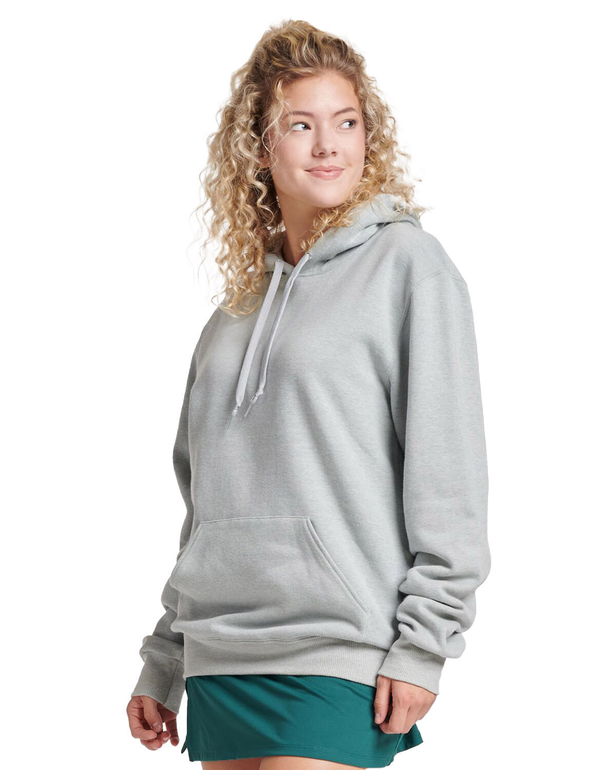 8.5 oz., 57% combed ring-spun cotton, 43% recycled polyester pre-shrunk fleece; Made with recycled polyester and sustainably-sourced, USA-grown cotton; Moisture-wicking;2-ply jersey-lined hood with grommets, matching tipped drawcord; Two-ply jersey-lined hood with grommets, matching tipped drawcord; Shoulder-to-shoulder taping; 2x2 rib cuffs and waistband; Front pouch pocket; Quarter-turned to eliminate center crease; Tear away label; Jerzees styles are manufactured using sustainable protocols and the commitment to enriching lives for people and communities which is measured and reported annually by Fruit of the Loom, Inc.;