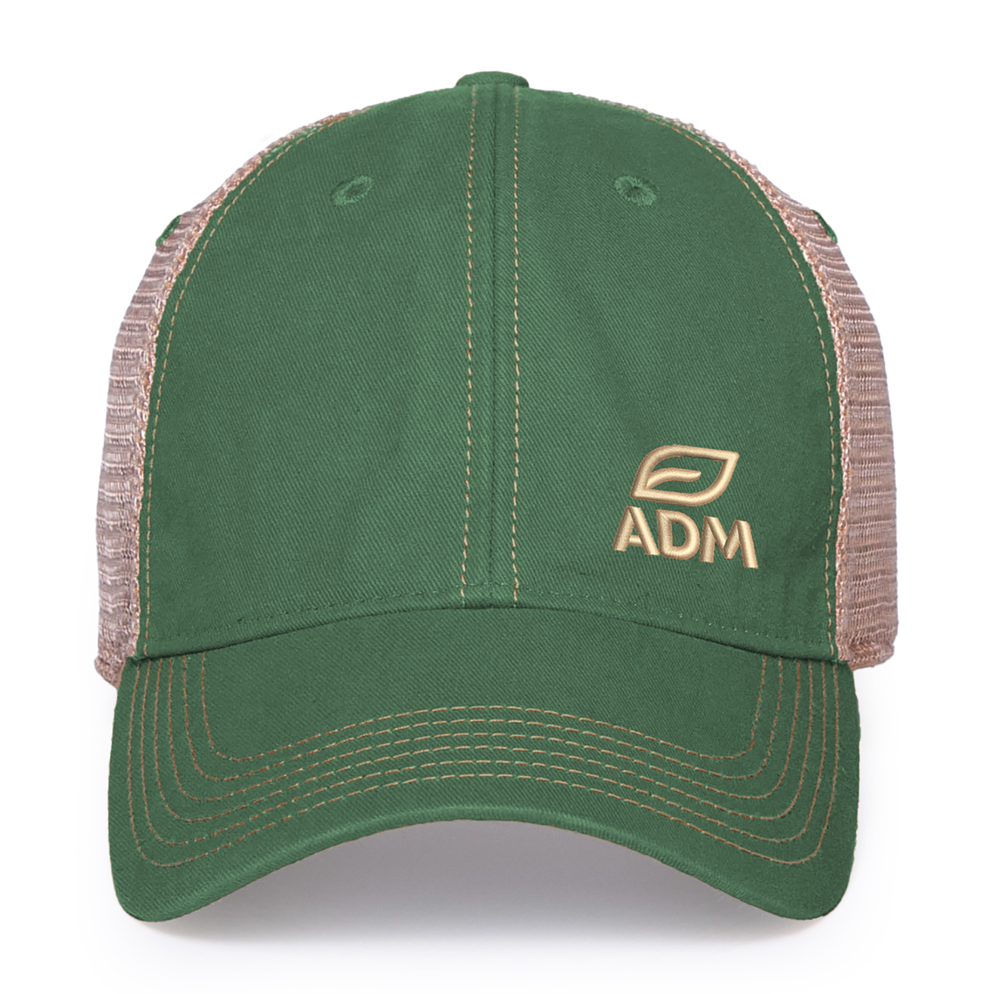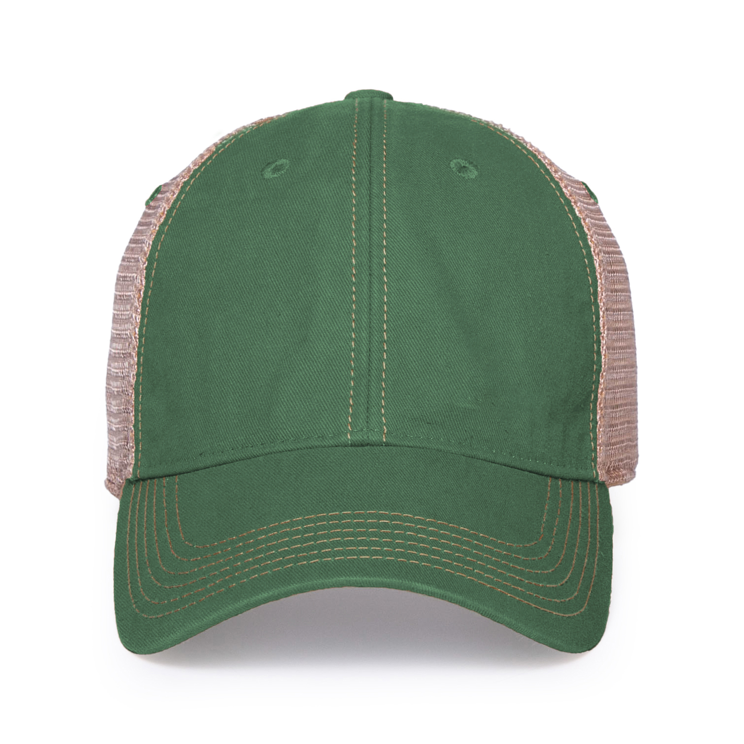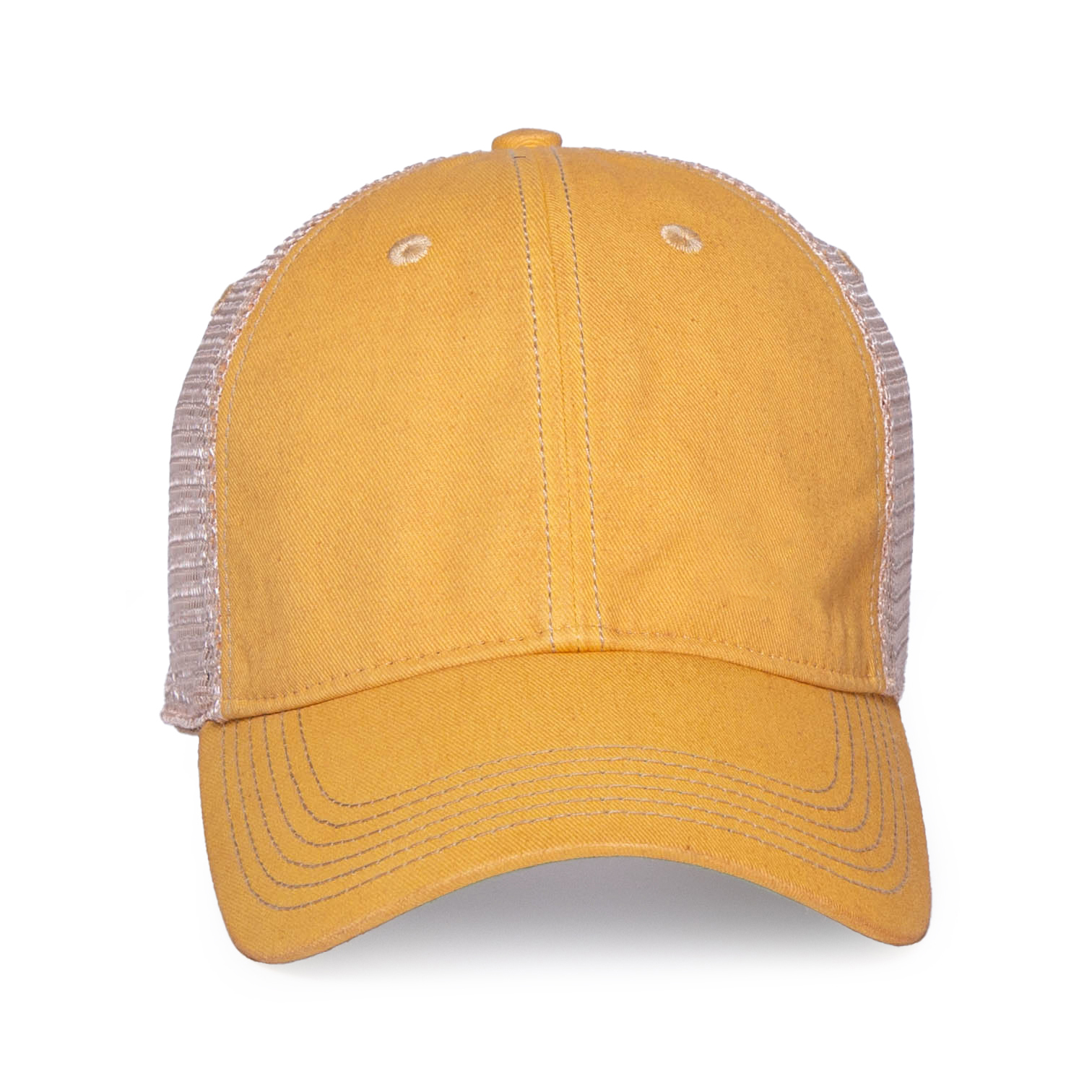 The Merrimack Hat Co.® Austin Vintage Trucker combines classic trucker comfort with a lived-in vintage wash. Featuring soft mesh back panels, unstructured front panels, contrast stitching, and a curved brim with green under-visor, it’s a timeless, easy-to-wear cap.