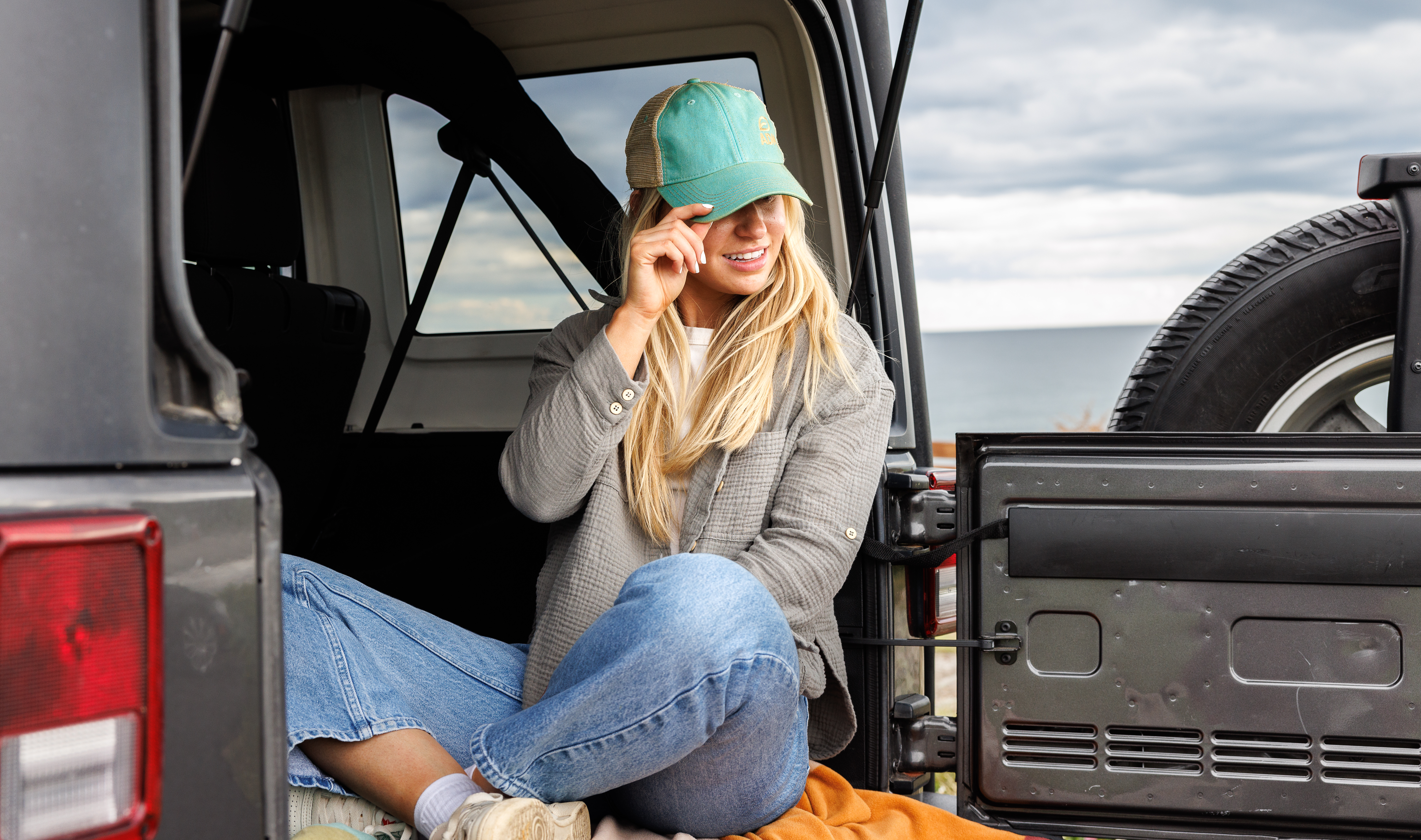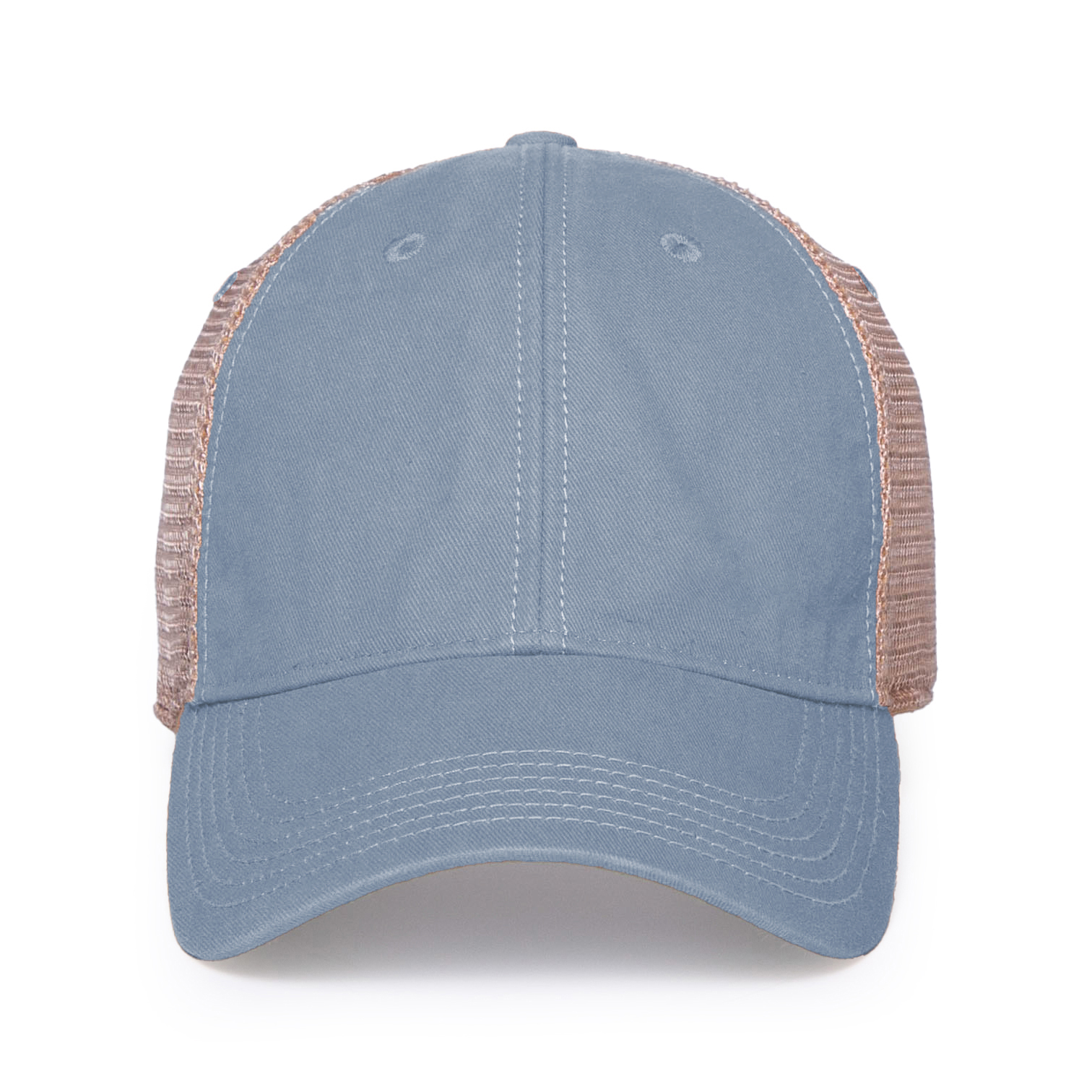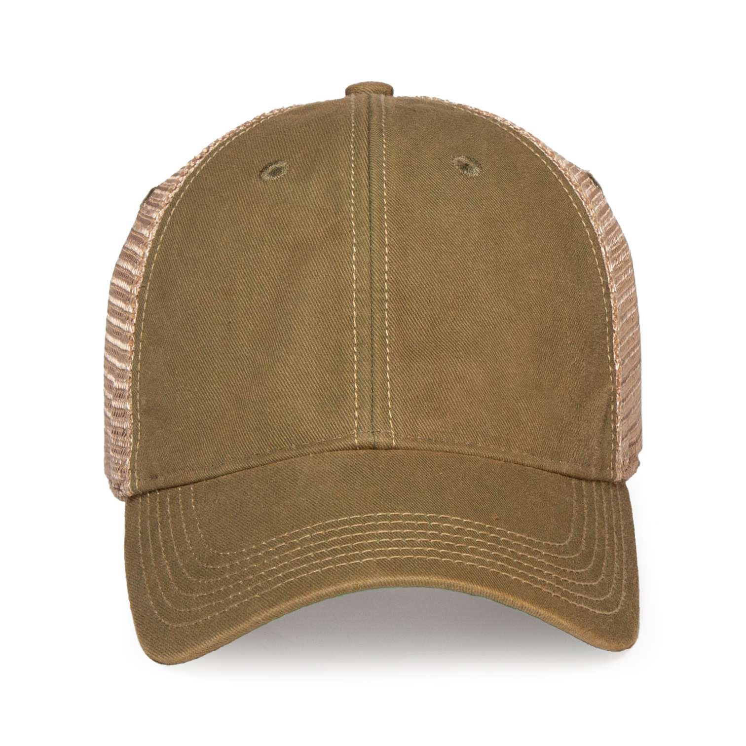 The Merrimack Hat Co.® Austin Vintage Trucker combines classic trucker comfort with a lived-in vintage wash. Featuring soft mesh back panels, unstructured front panels, contrast stitching, and a curved brim with green under-visor, it’s a timeless, easy-to-wear cap.