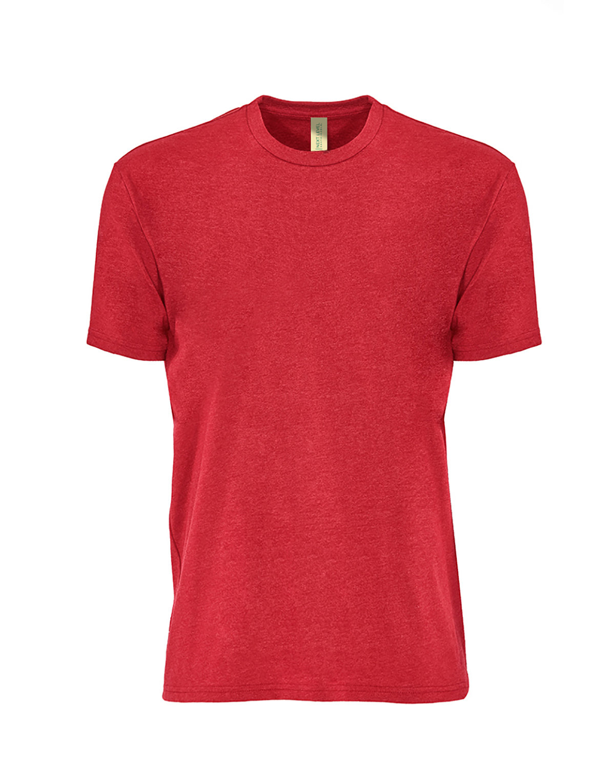 4.3 oz., 30% recycled cotton, 30% cotton & 40% rpet polyester; 30 singles orbital fabric; Slightly heathered;1x1 baby rib-knit set-in collar; Tear-away label; Sideseamed; Next Level Apparel has a recycling program for all fabric waste collected from the cutting process. All fabric scraps are sent to a recycling company that cleans and processes them to be used for cushion filling, rugs, etc. To date, 24.3M pounds of fabric have been recycled.;