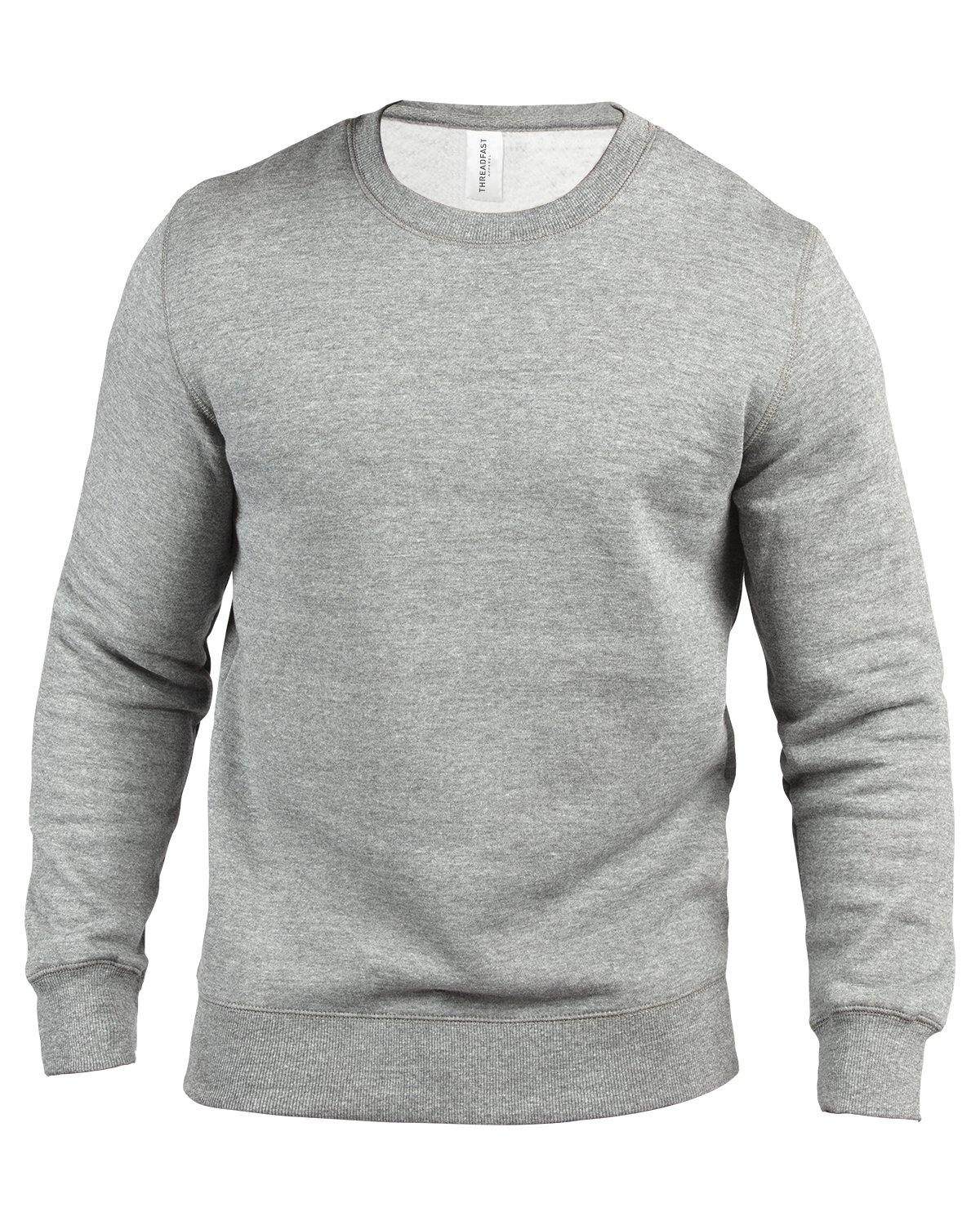 8.5 oz., 65% cotton, 25% recycled polyester, 10% polyester; Oatmeal Hthr, Heather Grey and Charcoal Hthr are 60% cotton, 30% recycled polyester, 10% polyester; Polyester fiber in this blend is made from recycled content including plastic bottles. ; Recycled poly helps reduce water usage, energy consumption and CO2 emissions when producing this garment.;Ribbed neck, cuff and hem; Retail fit; Side-seamed; Tear away label; Threadfast is a proud member of the Better Cotton Initiative (BCI). Cotton products from Threadfast support more sustainable cotton farming. Better Cotton is sourced via a system of mass balance.; Every Threadfast product contributes to the Plant with Threadfast program;