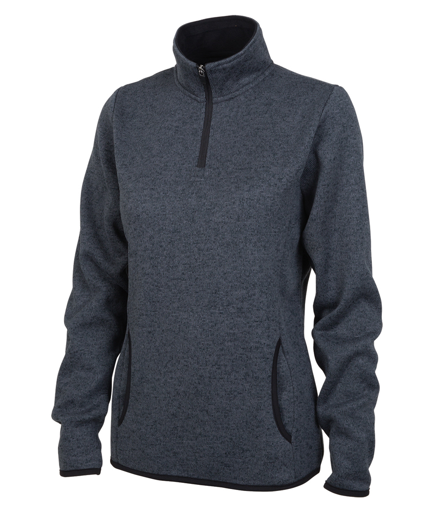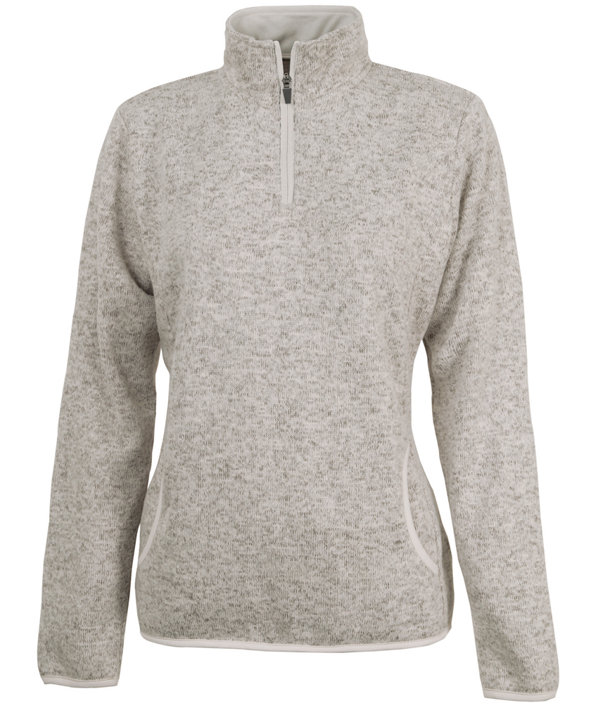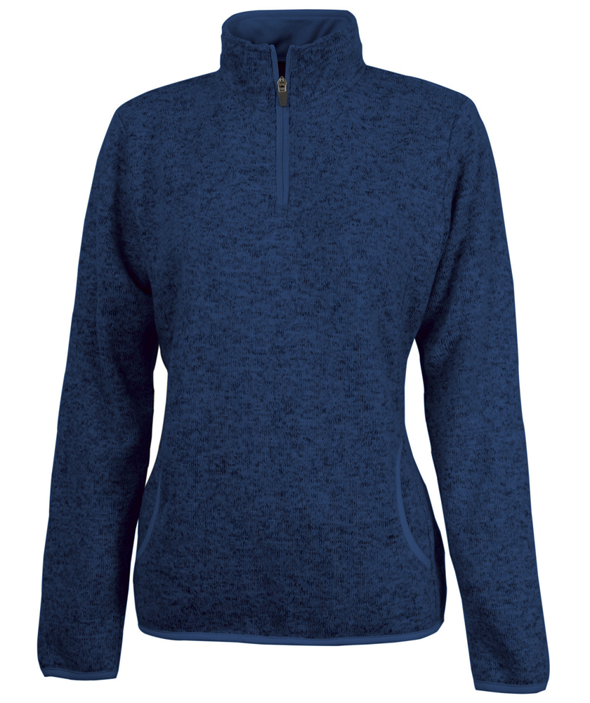 100% polyester sweater fleece (8.26 oz/yd2) | Brushed on the inside for added softness and warmth | Yarn-dyed to produce a unique heathered appearance | Knit binding adds a unique design detail | Ideal multi-seasonal transitional piece | Quarter-zip pullover design for bulk free all day comfort |