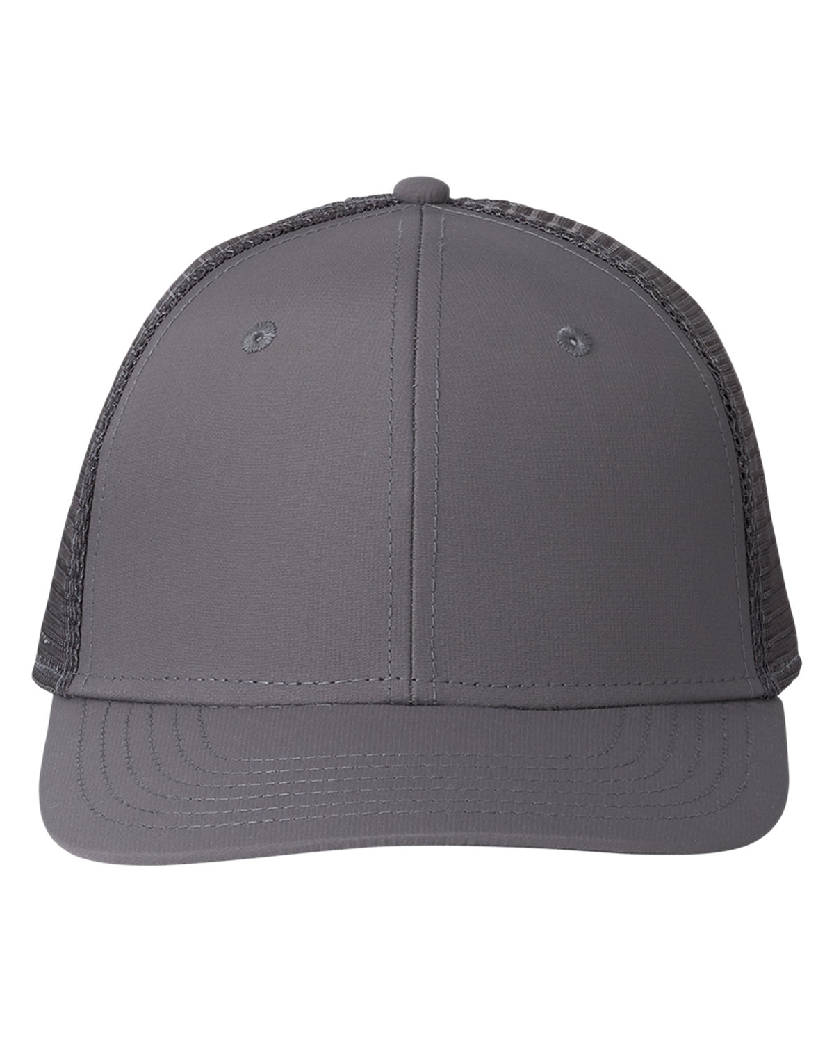 100% performance polyester; Moisture-wicking performance fabric;23" circumference; Traditional mesh-back trucker hat with snapback closure; Eyelets for ventilation ; Whale tab on the back;