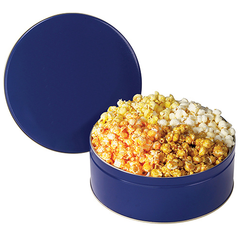 Just the right amount and variety to make your client happy! This gourmet popcorn tin boasts four delicious flavors: Butter, Cheddar Cheese, White Cheddar and Caramel Popcorn.
