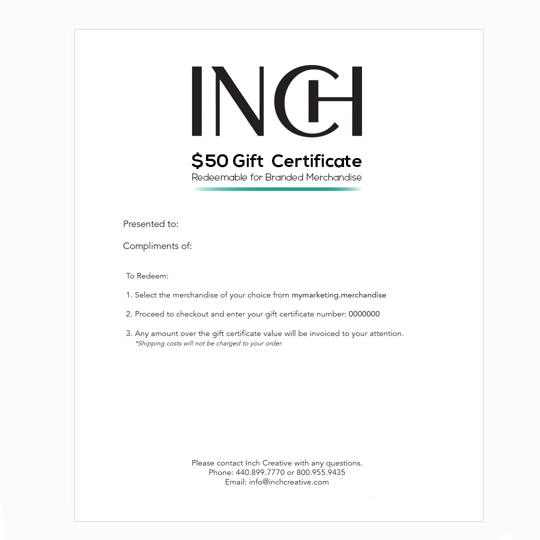 A gift certificate for merchandise, with $12.50 prepaid freight cost included at purchase.