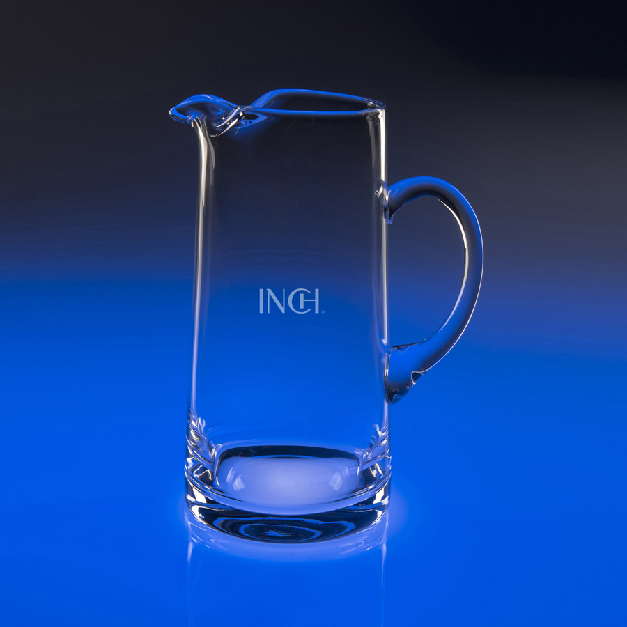 This very heavy tankard that features our brand is a time-tested favorite and a functional compliment to your conference room or kitchen. Hand-blown in Europe, the spout is well-designed for smooth pouring. Sorry, a little too nice for the dishwasher.