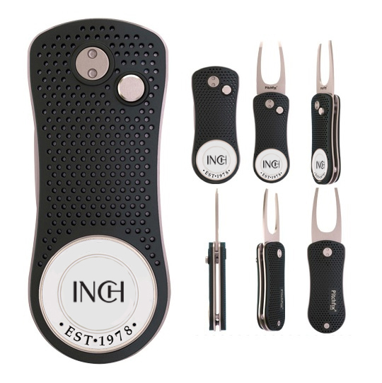 The SwitchFix is made from two sturdy steel sheets with a soft touch rubberized grip that is comfortable to hold and use. With a space for a removable ball marker anda button release switchblade fork and function make for the perfect tool.