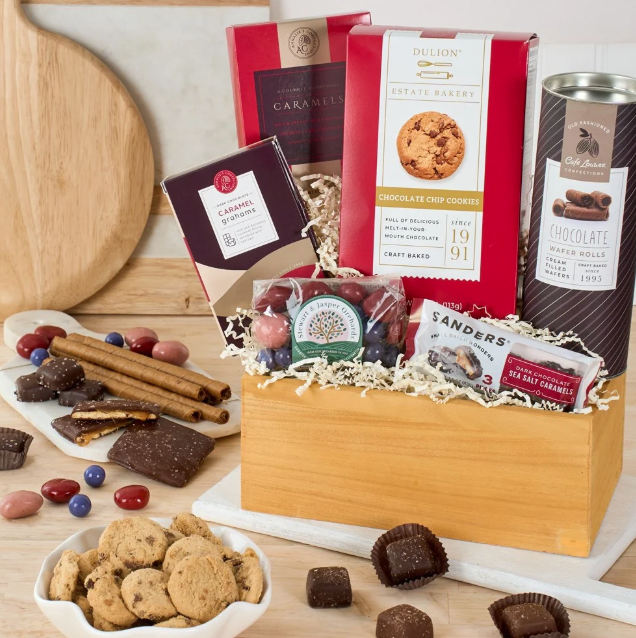 Our Classic Snack Gift is the ideal present for any occasion! This thoughtfully curated assortment of gourmet snacks is perfect for celebrating holidays and birthdays or sending heartfelt thank-yous. Your recipient will smile with delight as they unbox an array of delicious treats featuring an assortment of decadent chocolate delights. Celebrate with a delightful gift of gourmet snacks!