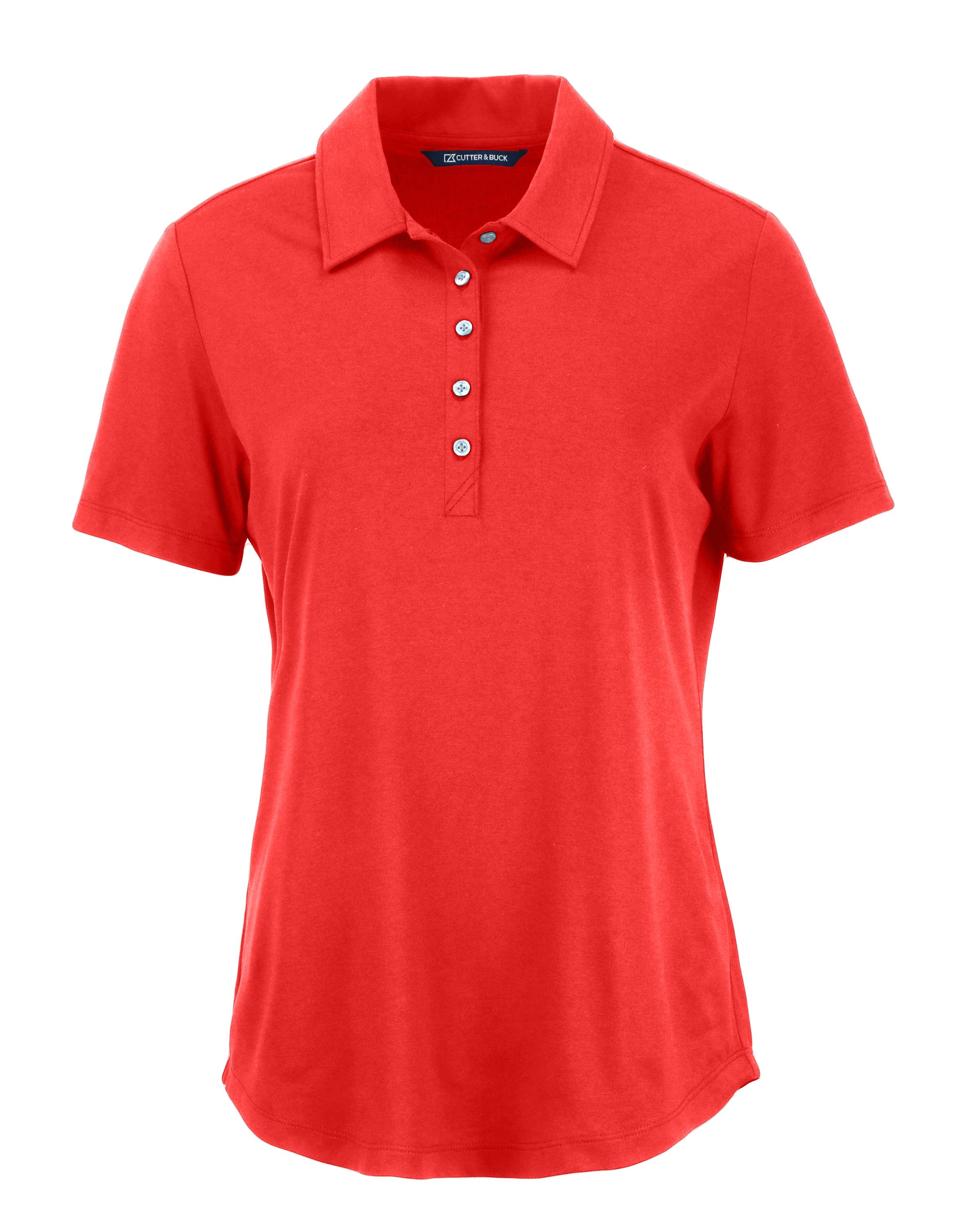 The exceptionally soft, iconic and sustainable Cutter & Buck Coastline Recycled Double Peached Womens Polo is designed to be your favorite versatile polo perfect for your active lifestyle. Move effortlessly in the lightweight, breathable double peached stretch performance jersey feeling airy and weightless on body. Made from GRS Certified post-consumer recycled polyester, ideal sun protective layer perfect for golf, tennis, WFH, travel, the office or wherever your adventure takes you. Easy to wash and wear, favorite tee shirt comfort looks great right out of the dryer.