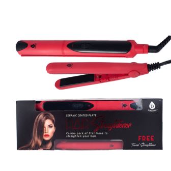 Pursonic - Professional Salon Quality Flat Iron Hair Straightener With A Free Travel Straightener - Red