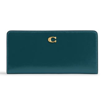 COACH - Refined Calf Leather Slim Accordion Zip Wallet - Maple/Brass