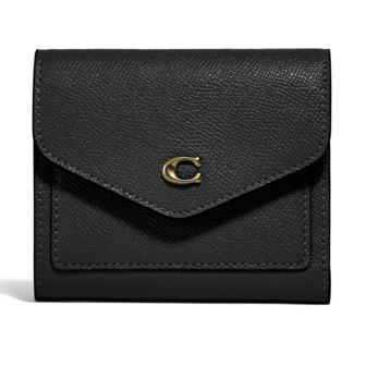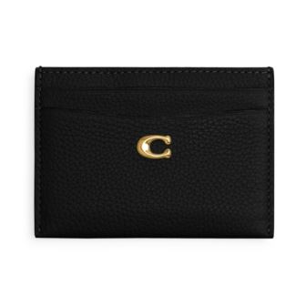 COACH - Polished Pebble Leather Essential Half Flap Card Case - Black/Brass