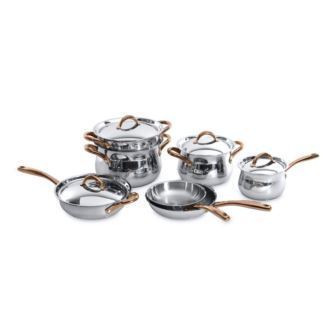 BergHoff - Ouro Gold 11pc 18/10 SS Cookware Set, Rose Gold Handles, Metal Lids