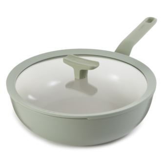 BergHoff - Leo Balance Ceramic Wok Pan 11", 4.4qt. With Glass Lid, Recycled Aluminum, Sage