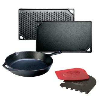 Lodge - Lodge - 16.75" Griddle, 12" Skillet, & 2 Scrapers