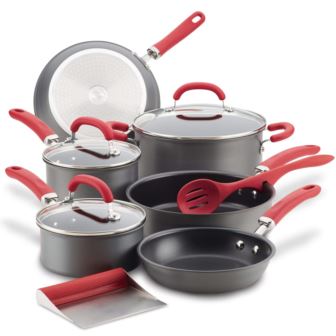 Rachael Ray - 11pc Hard-Anodized NS Cookware Set - Gray/Red