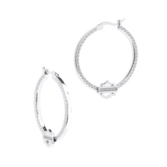 Harley-Davidson® - CZ Bar & Shield Sterling Silver Hoops