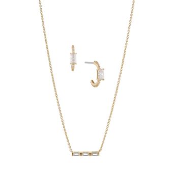 Nadri - Hoop Earrings and CZ Bar Necklace Gold