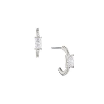 Nadri - Emerald Cut and Pave CZ Huggie Hoops Silver