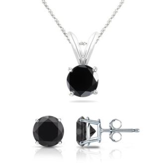Julia Jewelry - Round Cut Black Diamond Stud/Pendant - 0.35 CT TW